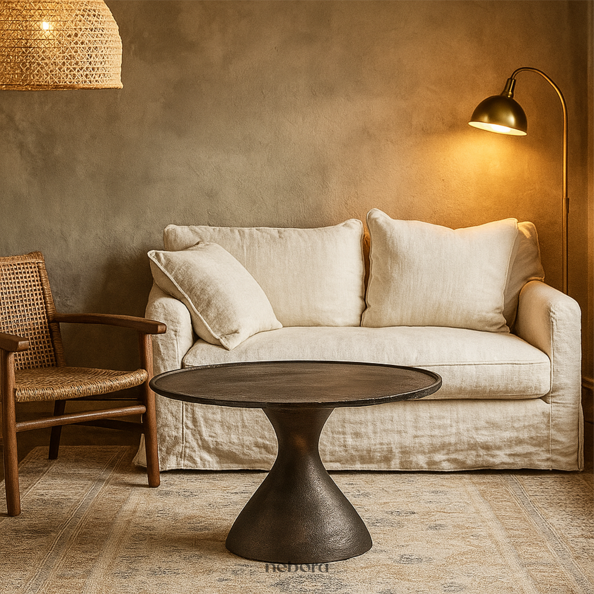 The Aileron Sculptural Table brings an air of quiet luxury and personal connection to your home. Its unique design and deeply textured finish feel both substantial and inviting, offering a perfect surface for your cherished mementos or a favourite book. It's the ideal piece to anchor a cozy reading nook or a private corner, fostering a feeling of calm indulgence