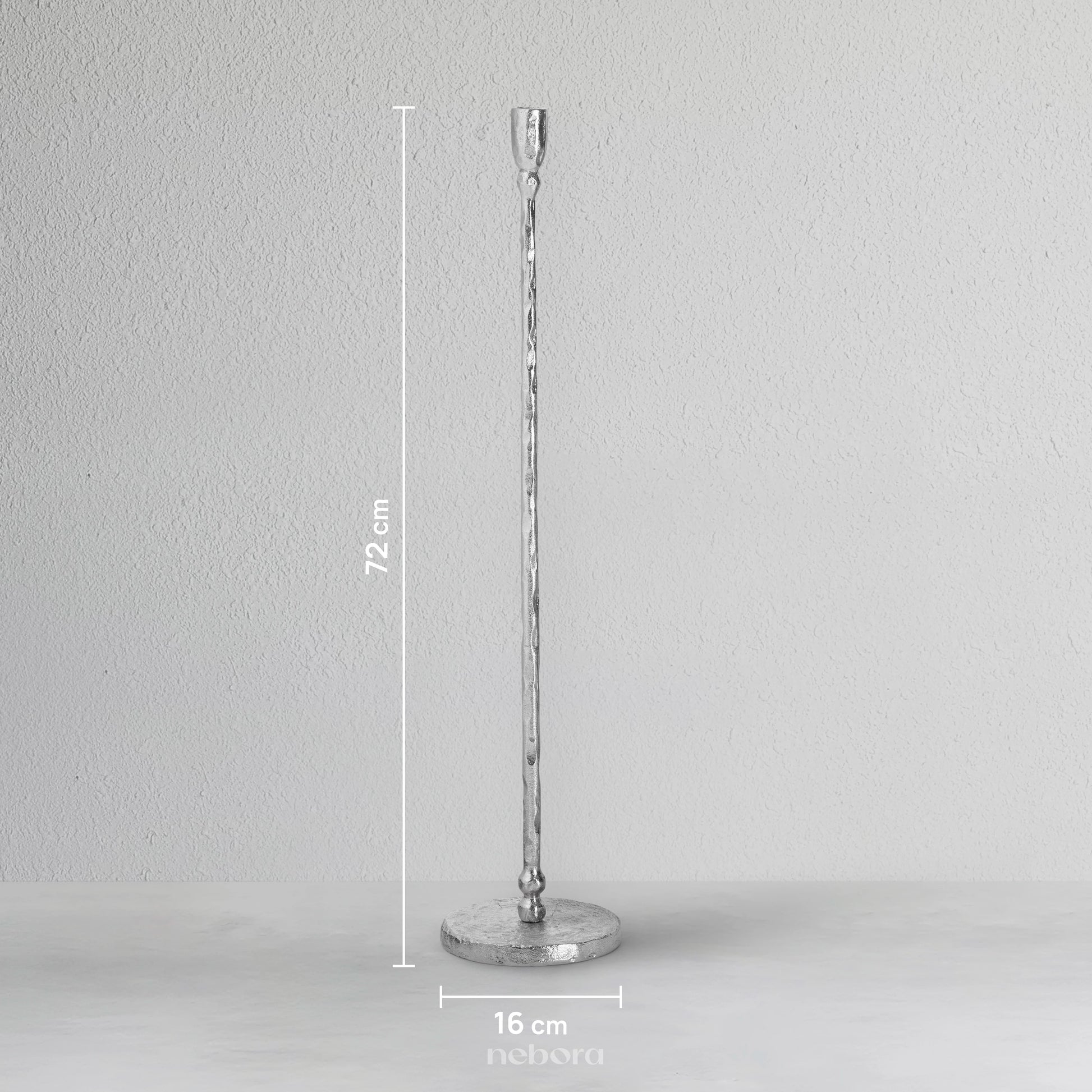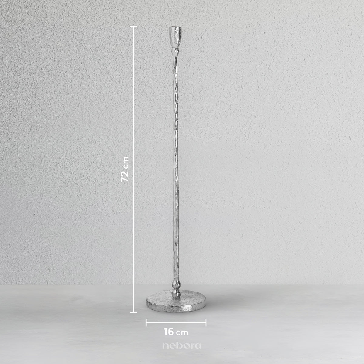 Rising like a modern monolith, this large candle stand marries a raw, organic texture with a brilliant polished finish to create a truly unique aesthetic. Its commanding height and slender form evoke a sense of quiet grandeur, serving as a powerful, solitary monument to light. This piece is perfect for a minimalist setting, where its sculptural beauty and refined, primal feel can stand as a captivating centerpiece that is both ancient in spirit and contemporary in design.