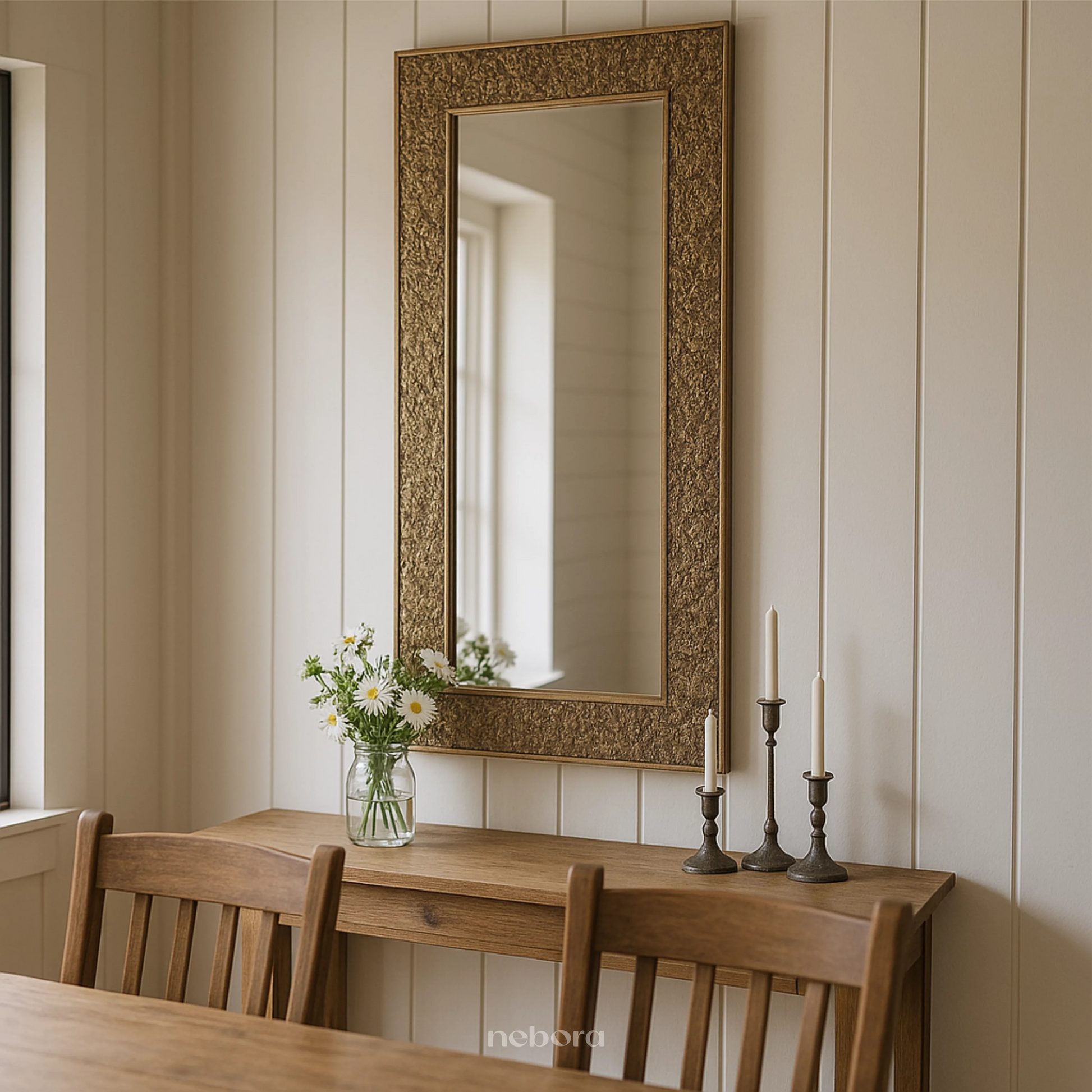 The Aurelian mirror is a window to both your reflection and a sense of enduring beauty. Its richly textured, hand-finished frame feels like a treasured artefact, adding a feeling of timeless grandeur and a story of artistry to your space. This is a mirror that brings a soulful, historic presence to your home.