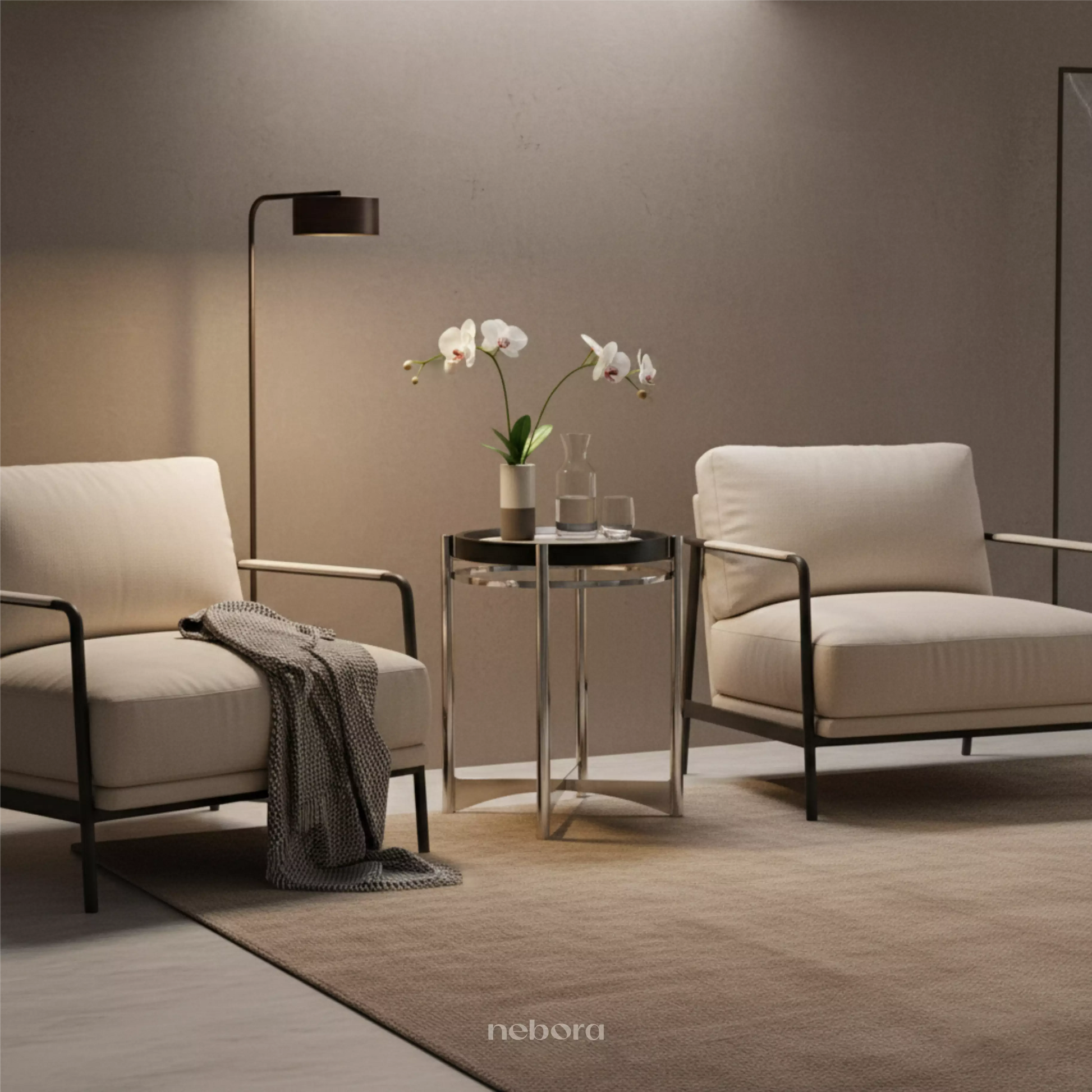 Introducing the Calista Side Table – a beacon of refined elegance. Its airy, chrome frame and sleek top create a graceful silhouette, embodying an effortless luxury that seems to float, bringing a touch of sophisticated lightness to any setting.
