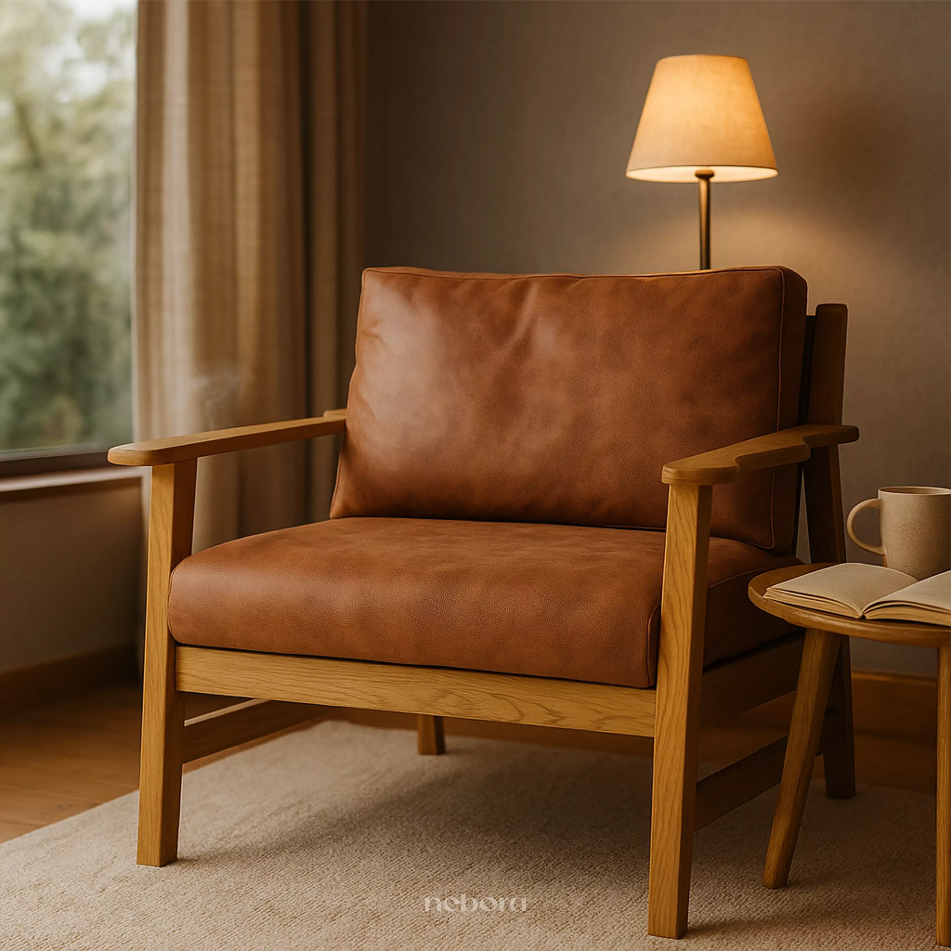 A modern classic where every detail feels like a soft whisper of calm. The striking combination of light-toned wood and plush, warm-hued fabric creates a feeling of effortless elegance. This isn't just a piece of furniture, it's a foundation for connection, designed to bring a sense of peace and tranquillity to your home.