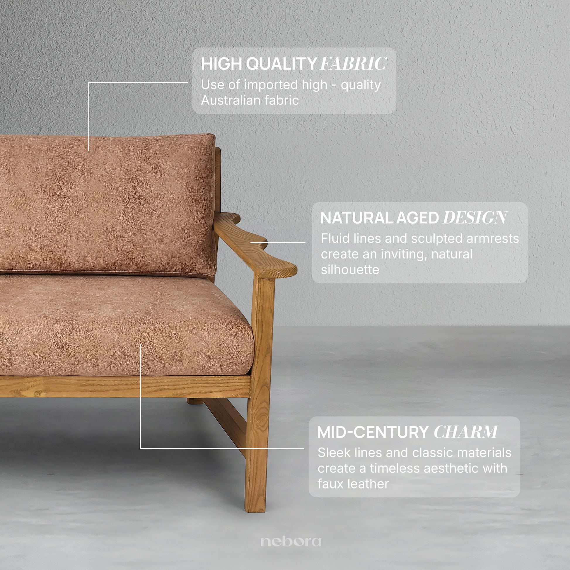 Crafted for shared stories and quiet moments, this Century Two Seater Loveseat Sofa is where conversations begin and comfort is found. Its organic wooden frame with beautifully curved arms and invitingly soft upholstery create a warm, natural space. Place it in a sunlit corner of your living room or study to create an intimate retreat for two.