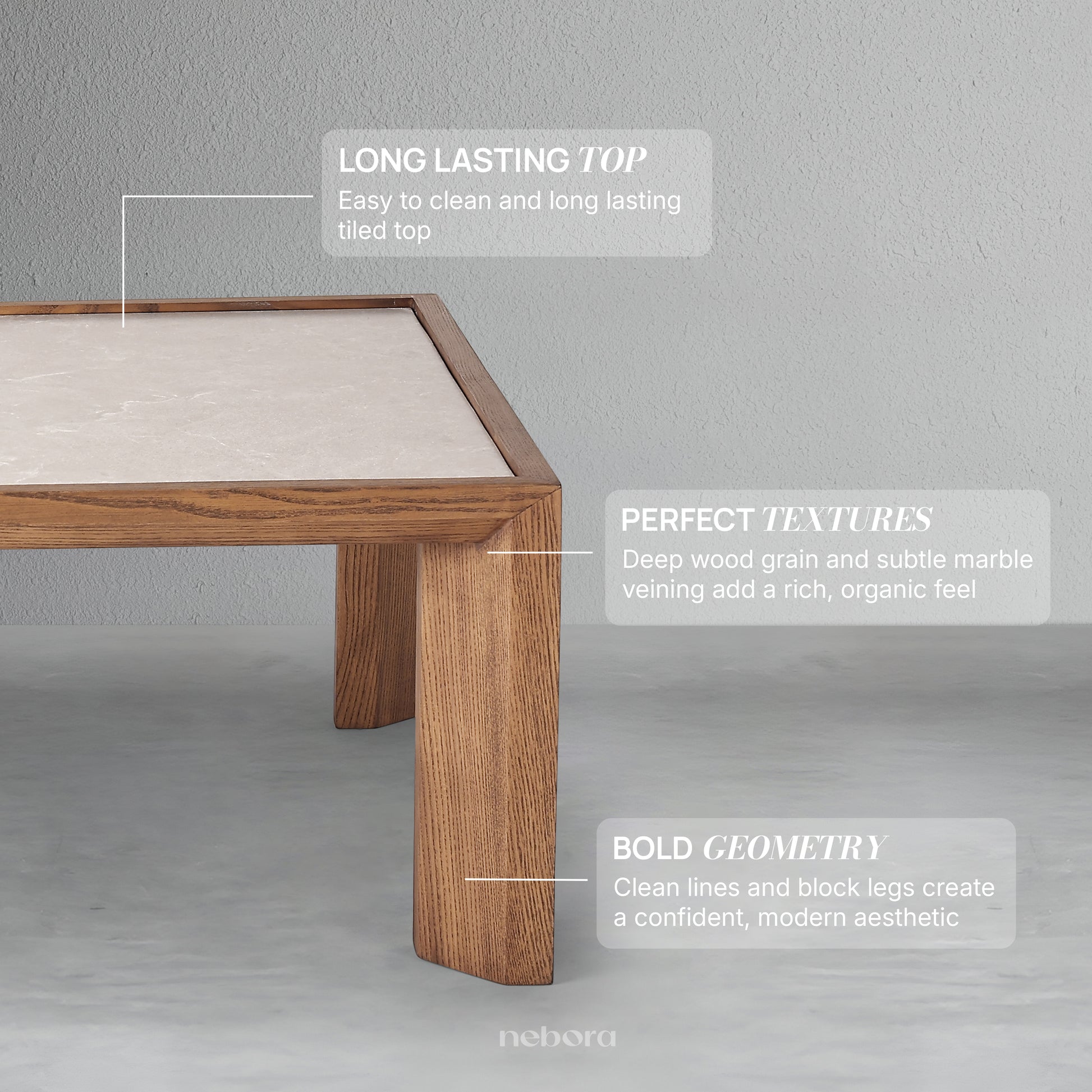 Crafted to be a quiet centrepiece, this table fuses the enduring strength of wood with the timeless grace of stone. Its clean lines and harmonious materials create a feeling of lasting sophistication. Place it at the centre of your living room, and let it become a beautiful stage for the daily rituals and cherished memories that define your home.