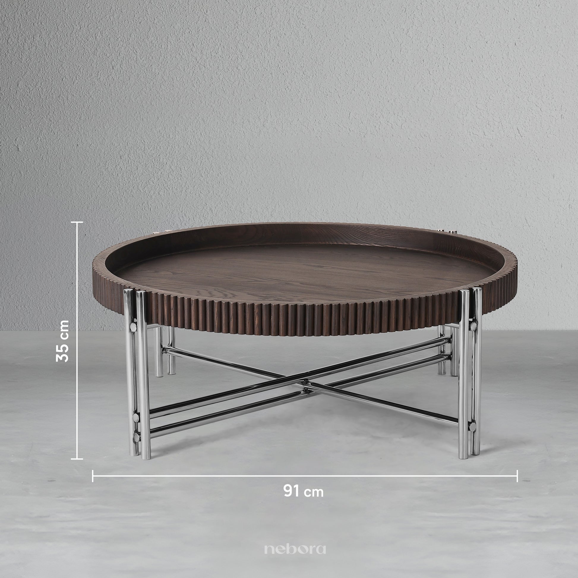 This coffee table is a testament to the power of thoughtful design. Its low profile and generous proportions create a feeling of grounded stability, while the combination of natural wood and reflective metal speaks to an understated yet undeniable sense of luxury. It's a piece that anchors your room with quiet sophistication.