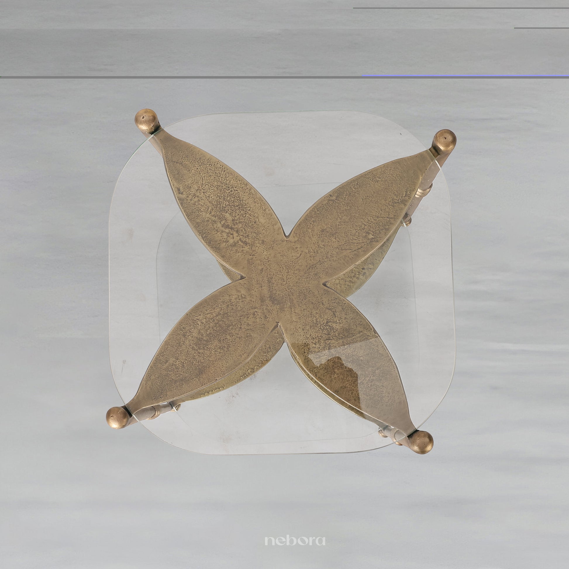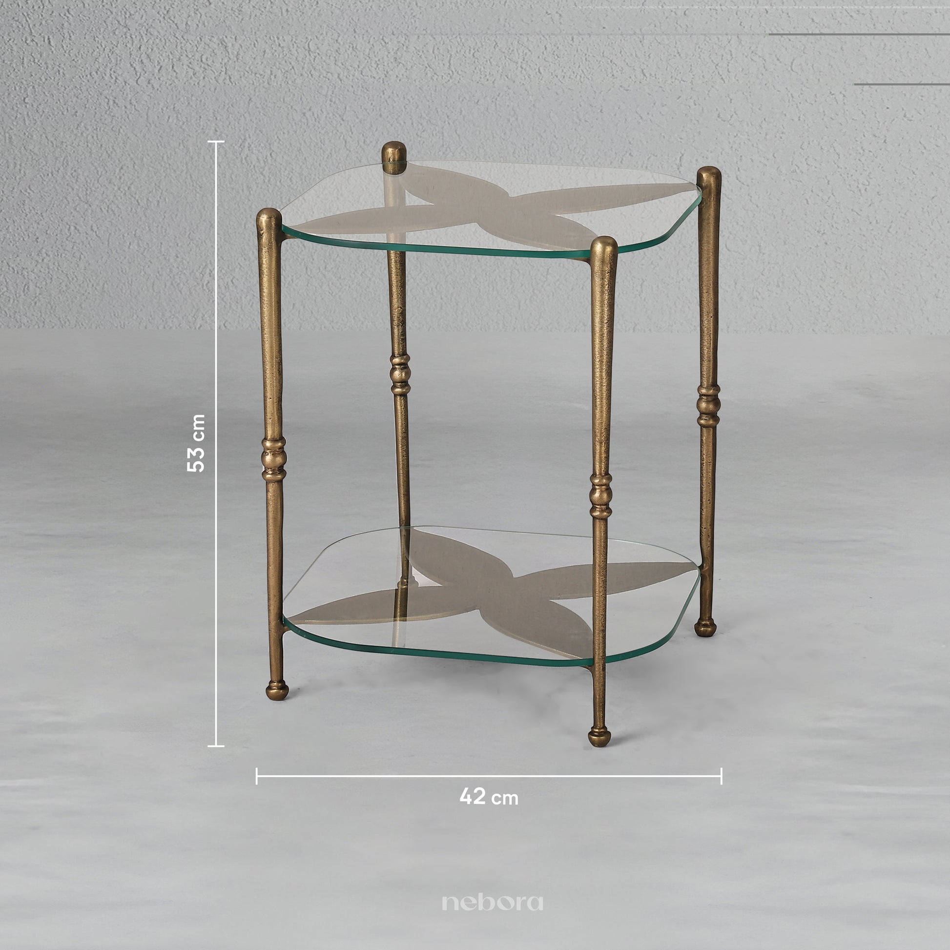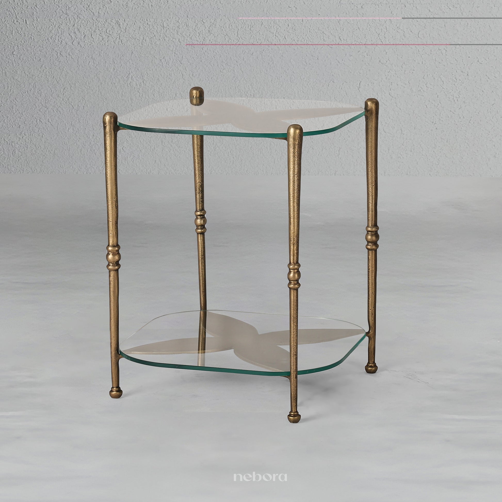 Crafted to capture and reflect light, this delicate piece creates a sense of airy sophistication. Its slender silhouette makes it an ideal complement to a minimalist reading nook or as a chic perch for a delicate vase and a lamp, inviting a serene and open atmosphere.