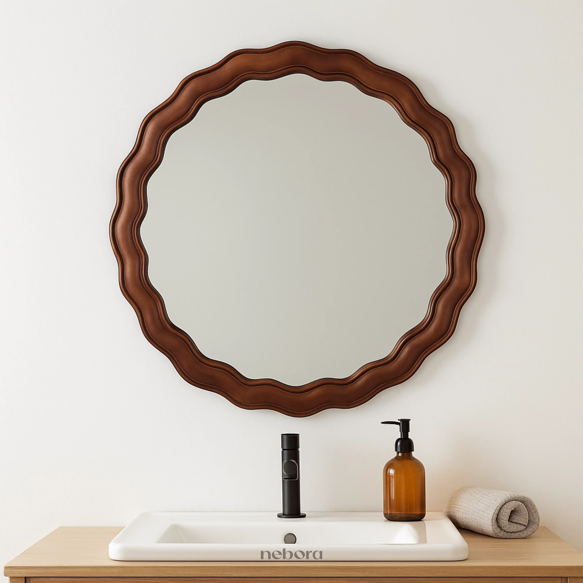 Designed to be the heart of a cozy, welcoming home, this round mirror adds a touch of classic beauty. Its unique wooden frame gives it a handcrafted feel, making it a perfect addition to a space that values warmth, comfort and soulful design.