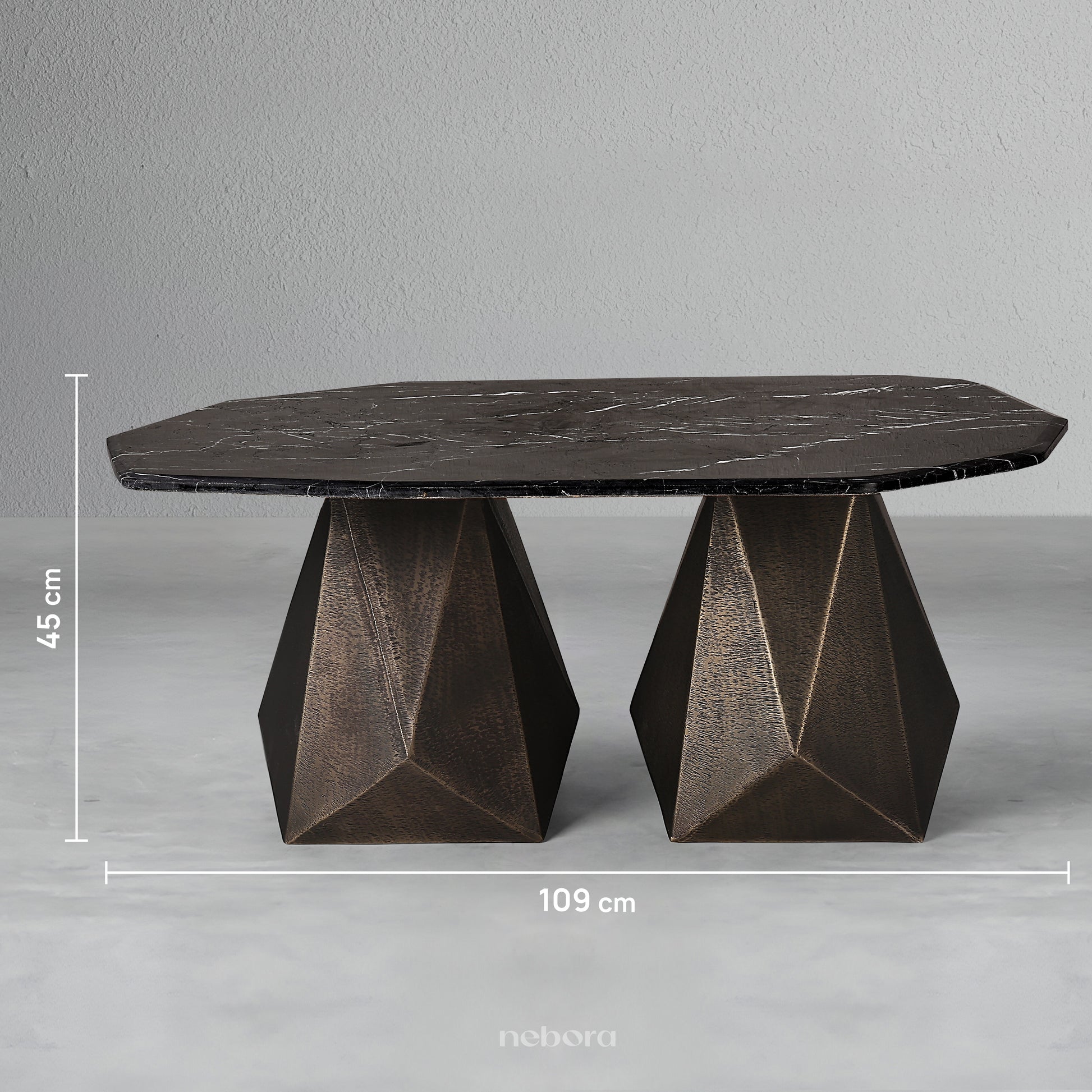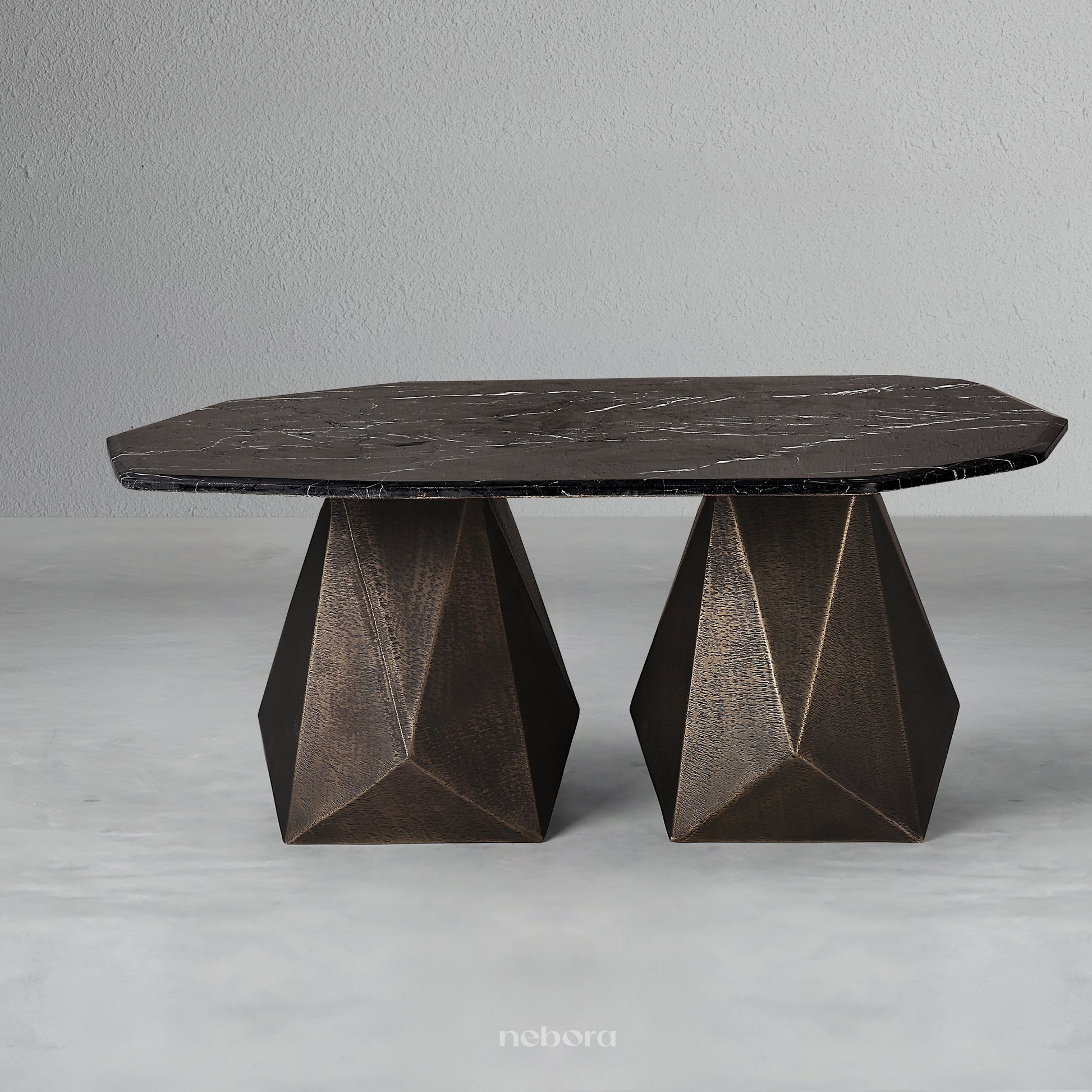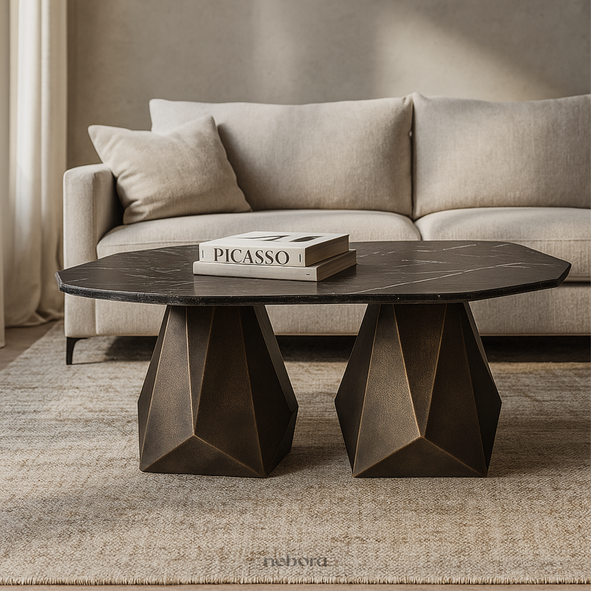 Grounded by two powerful, faceted sculptures, this coffee table is a testament to raw, artistic strength. Its substantial presence commands a room, creating a strong emotional connection to bold design and an enduring sense of confidence.