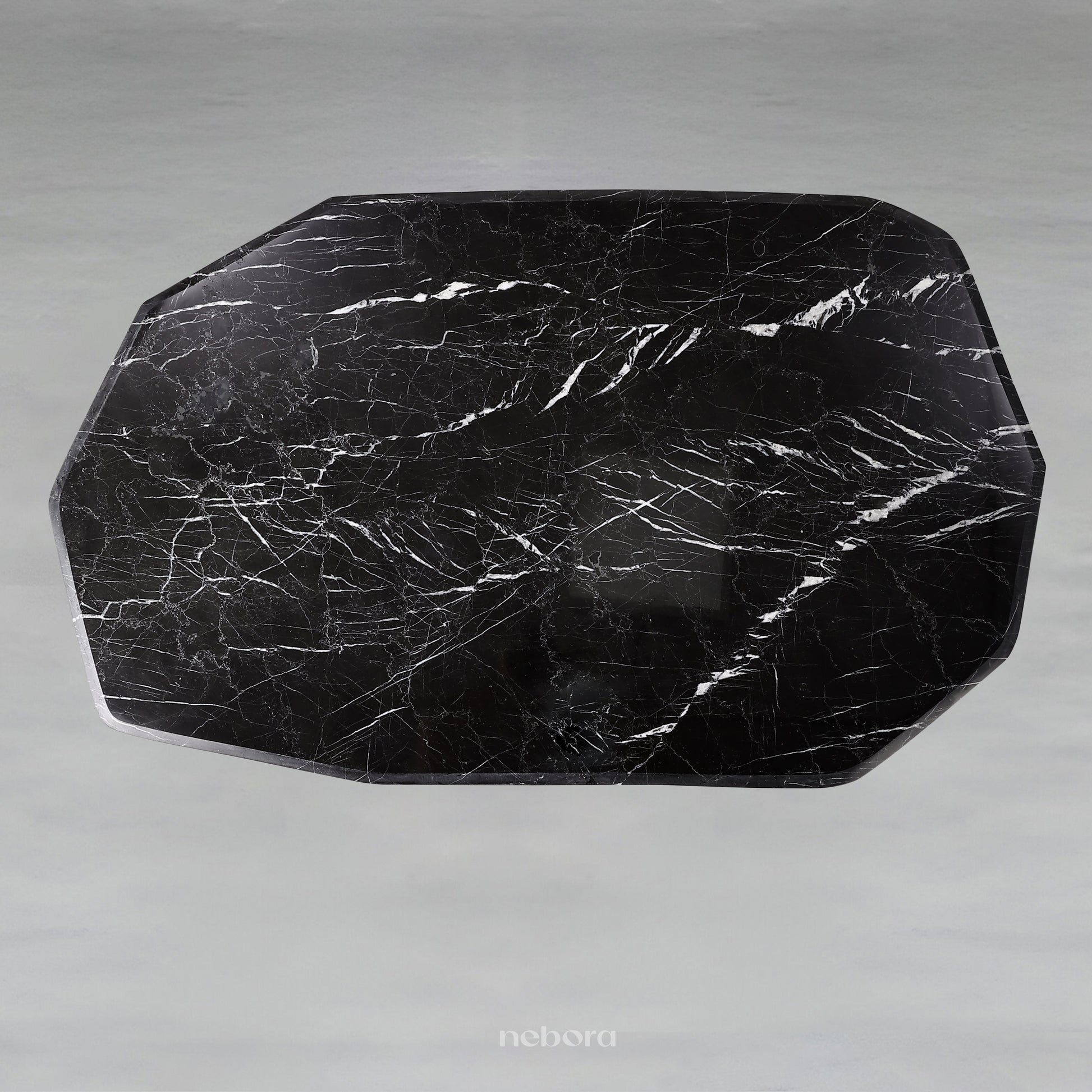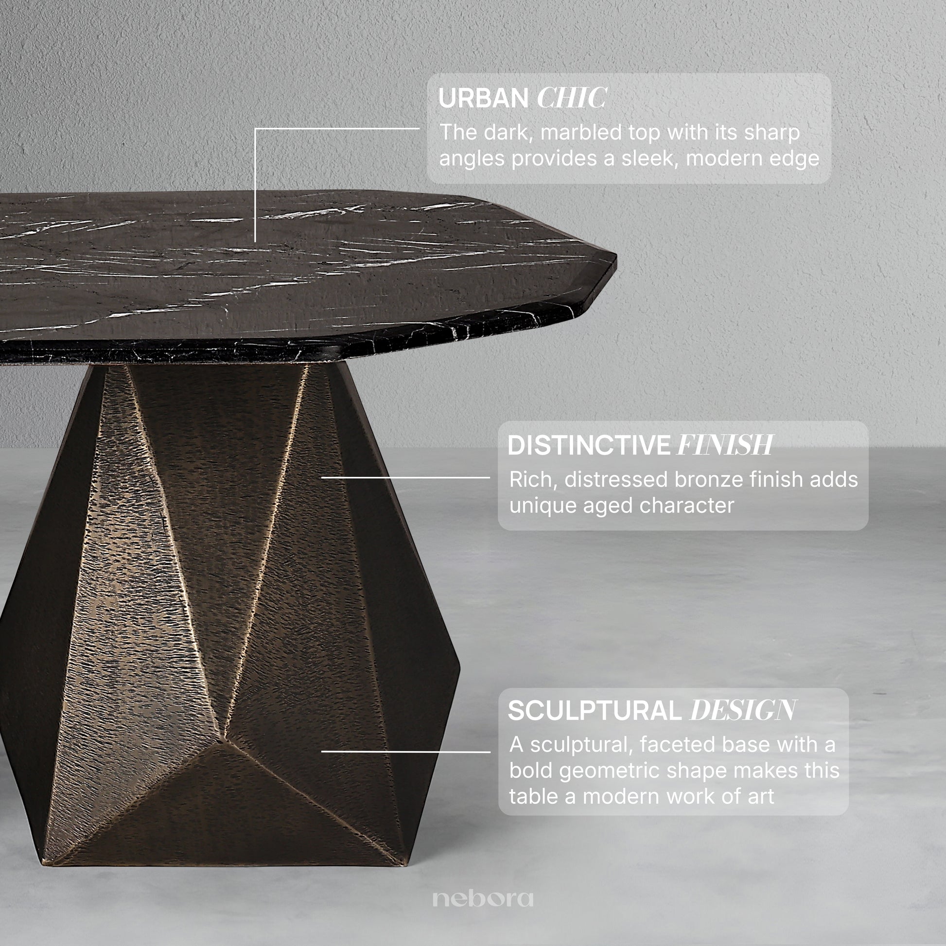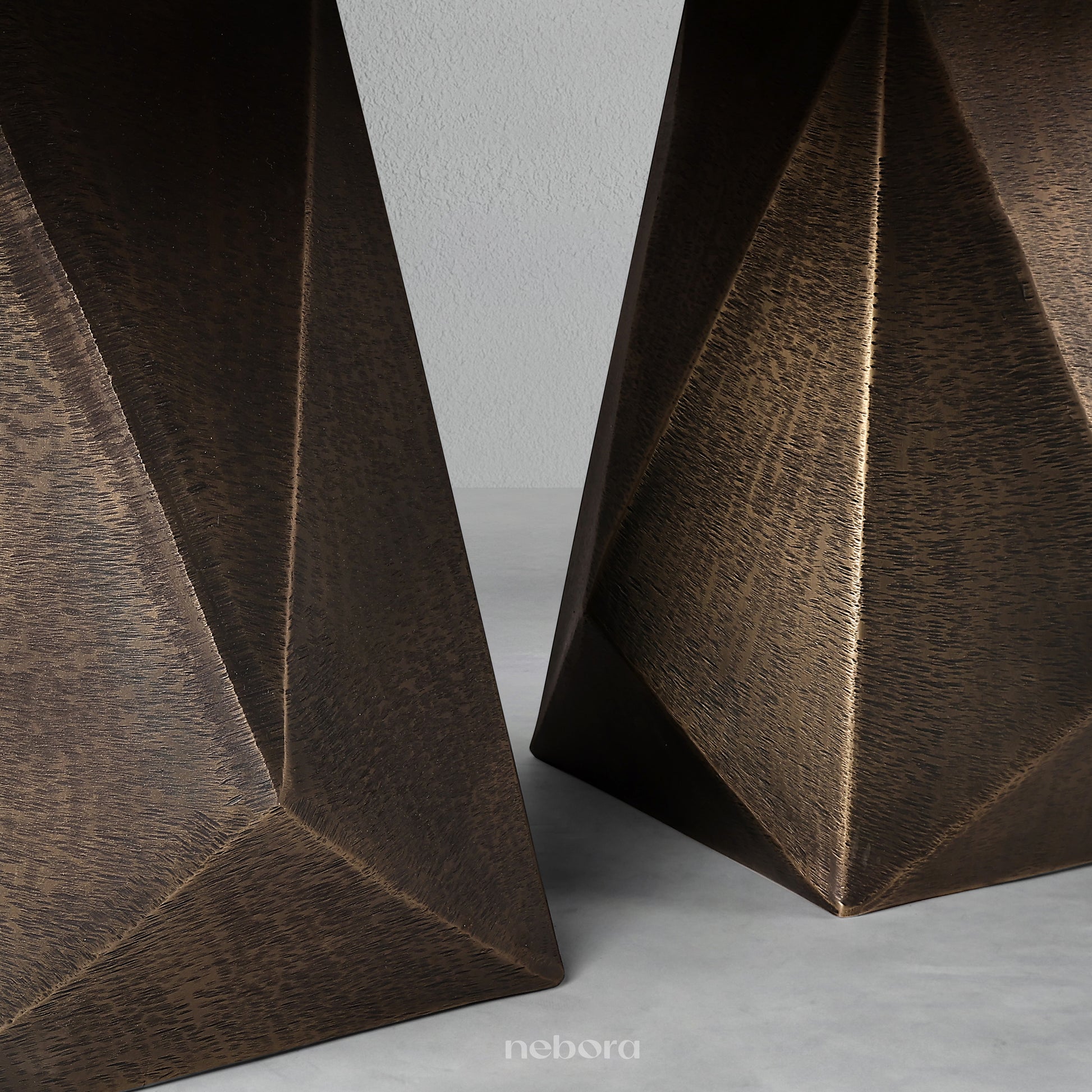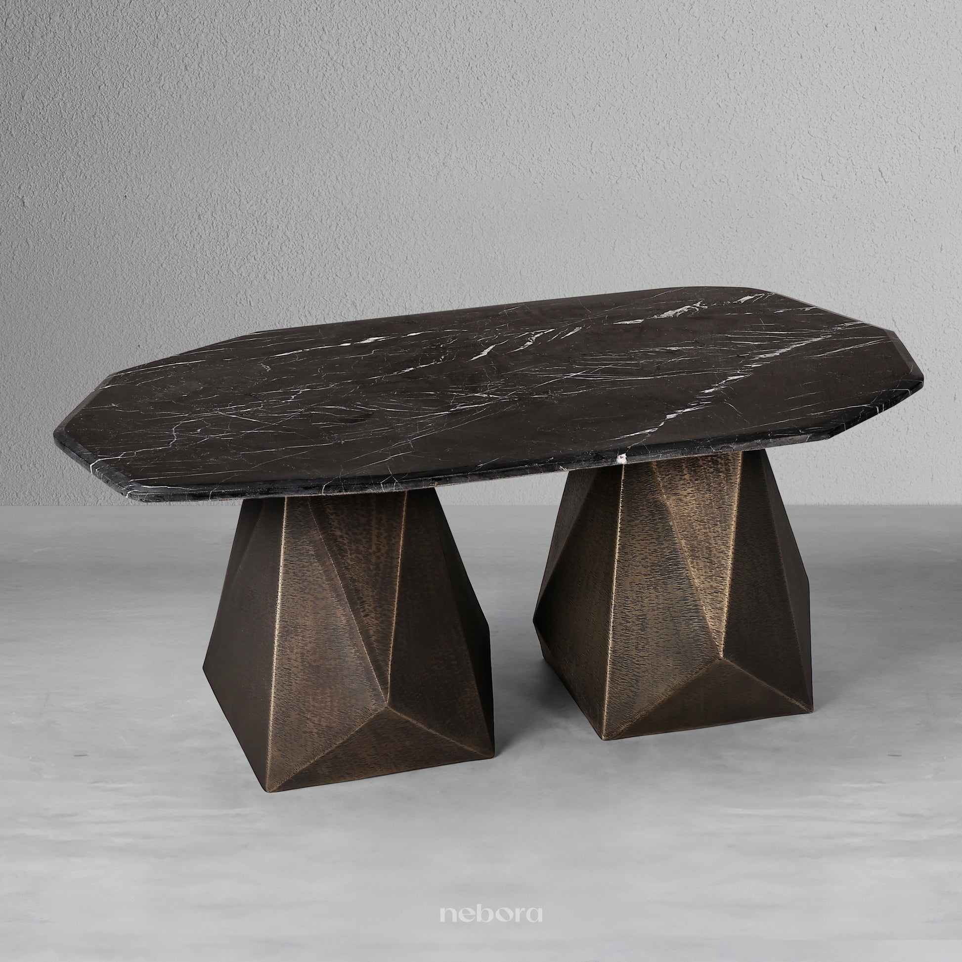 Grounded by two powerful, faceted sculptures, this coffee table is a testament to raw, artistic strength. Its substantial presence commands a room, creating a strong emotional connection to bold design and an enduring sense of confidence.