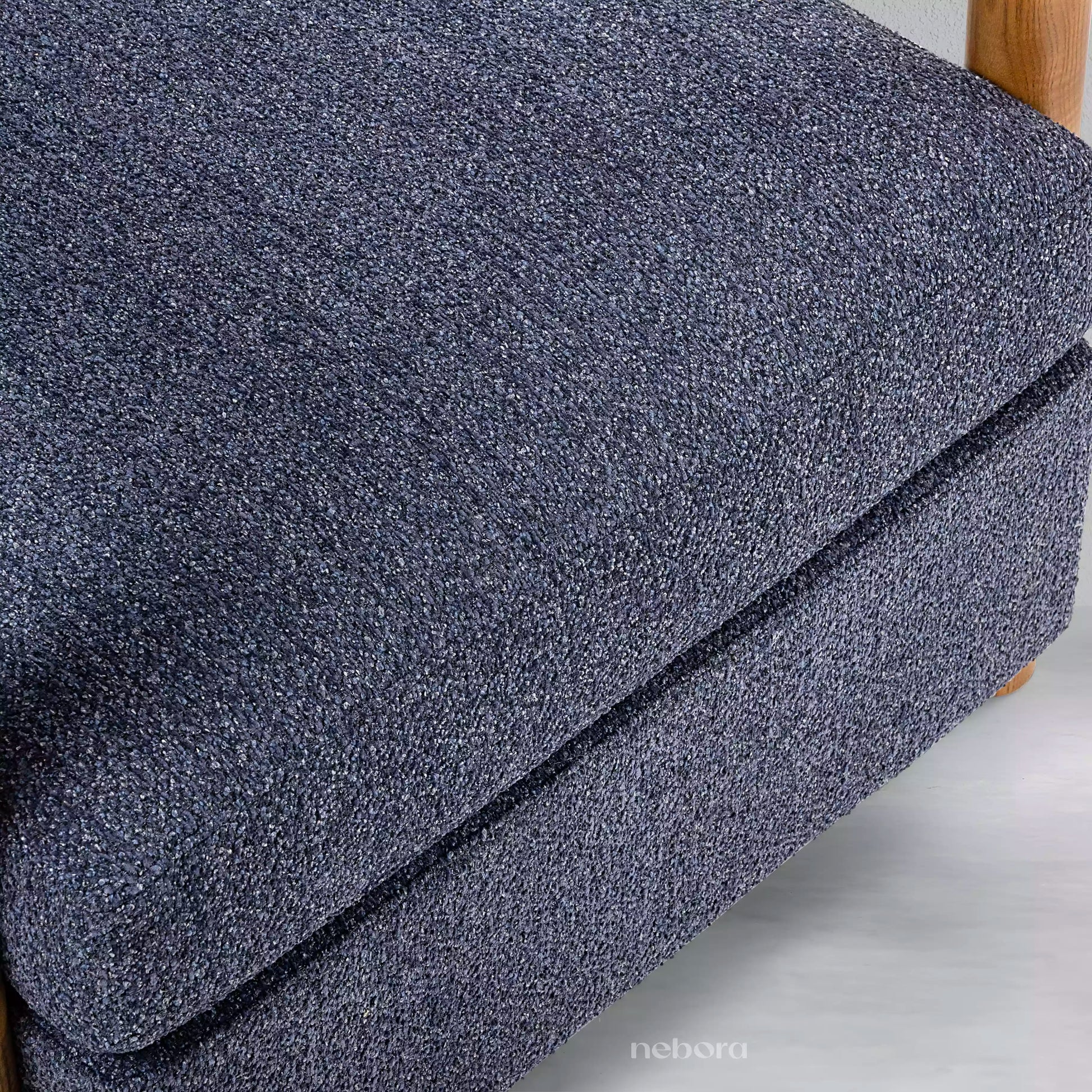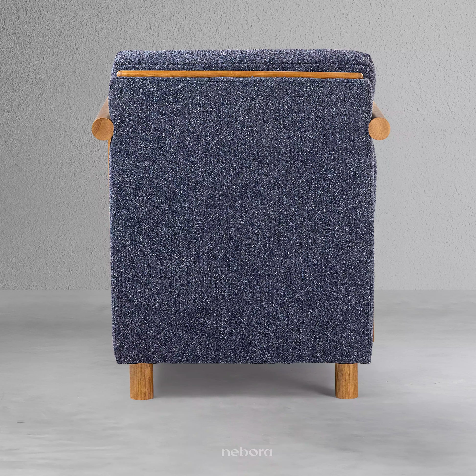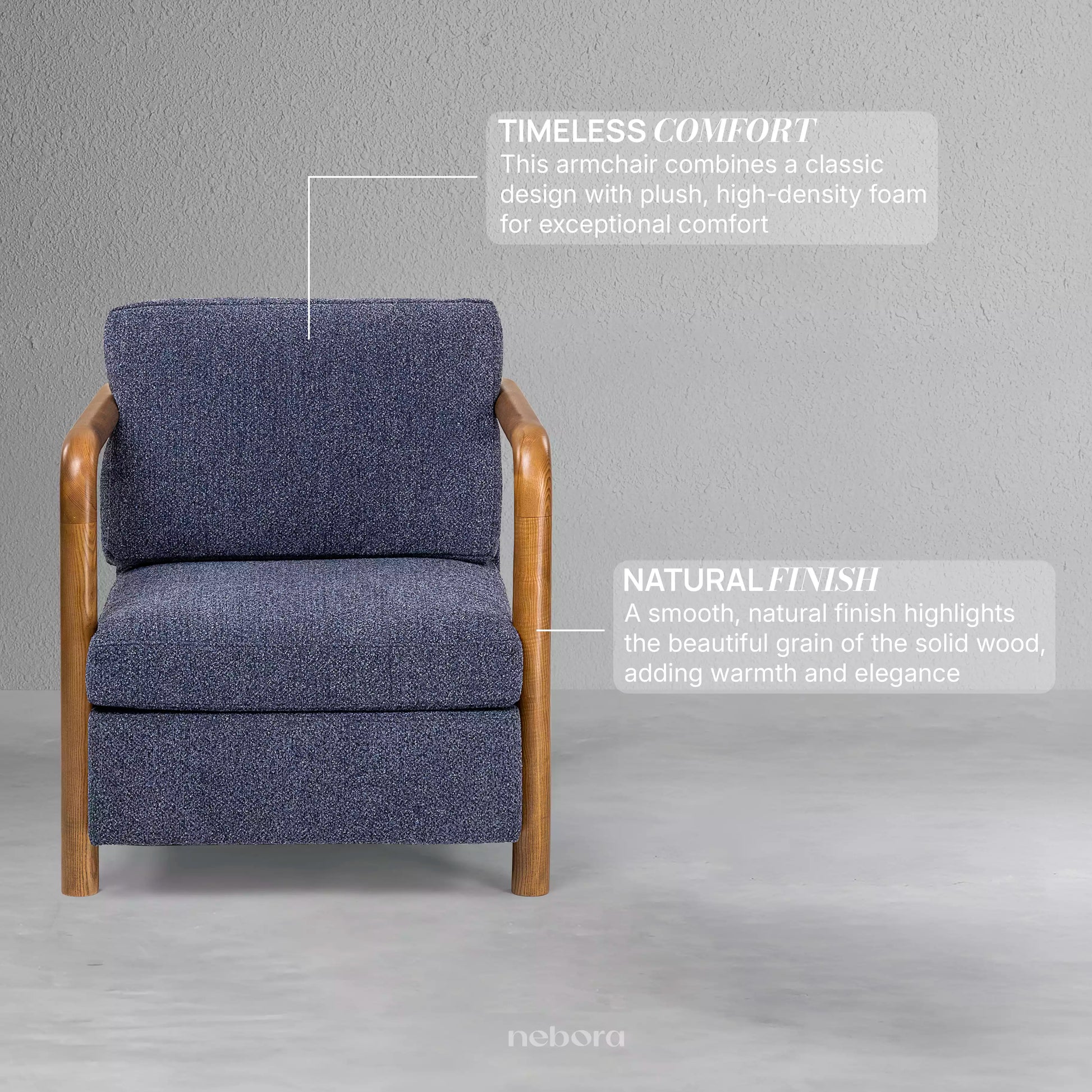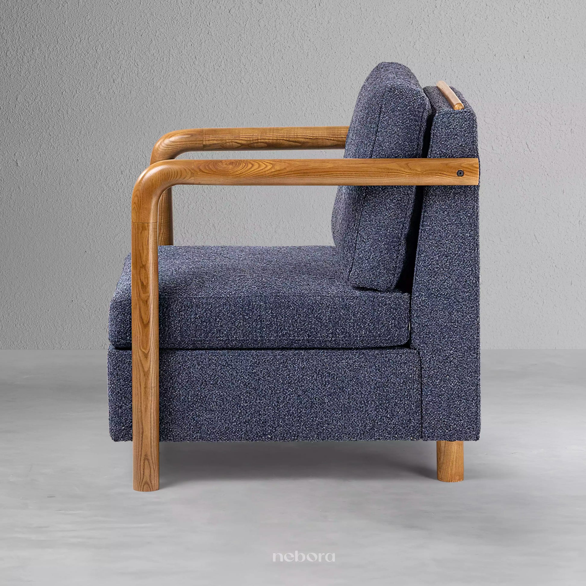 Discover a timeless retreat with this elegantly designed armchair. Its seamless, curved wooden frame and warm, polished finish create an inviting, organic silhouette that feels both classic and modern. The plush cushions, upholstered in a rich, textured navy fabric, offer a luxurious feeling of comfort, making this the perfect place to unwind with a good book in your living room or study. It's more than a chair, it's a cozy embrace of sophisticated style.
