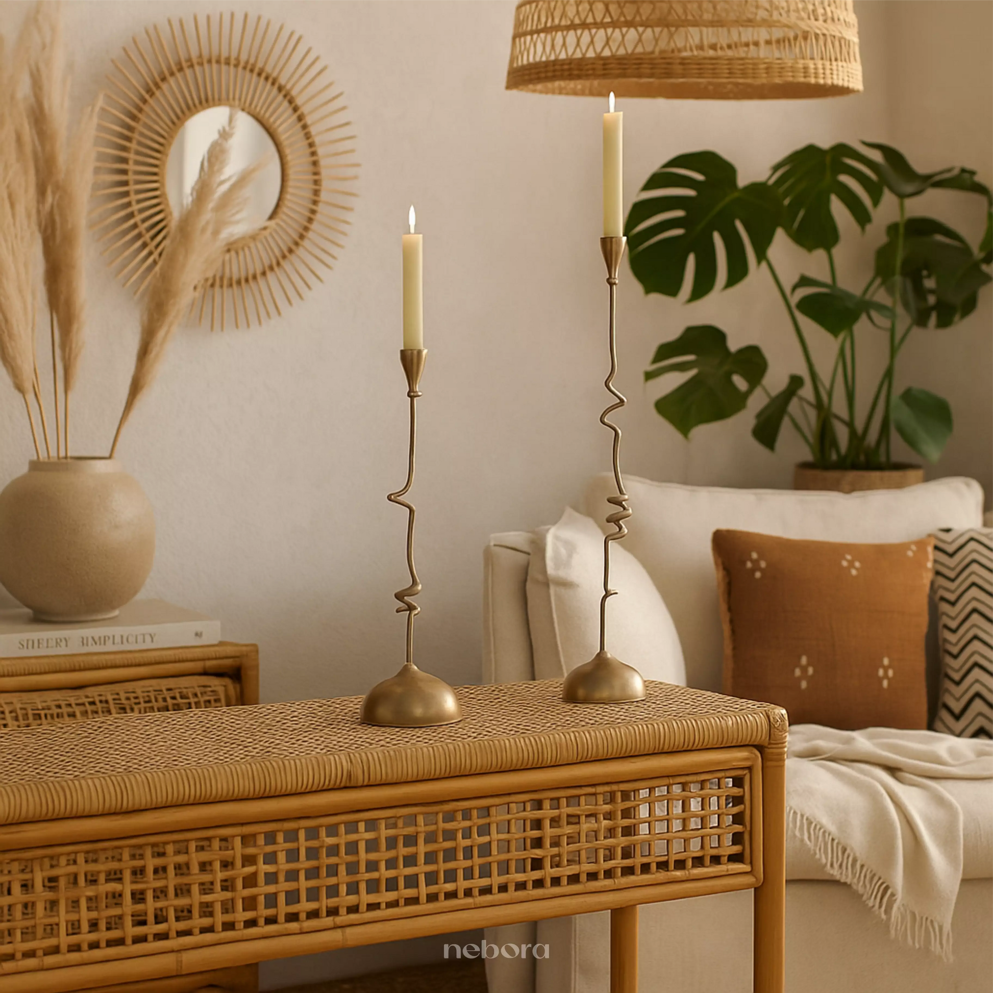 These candle stands set bring a poetic, free-form elegance to your space with their gracefully winding stems. Place them on a dining table or a fireplace mantel to cast a romantic glow that inspires creativity and a sense of effortless style.