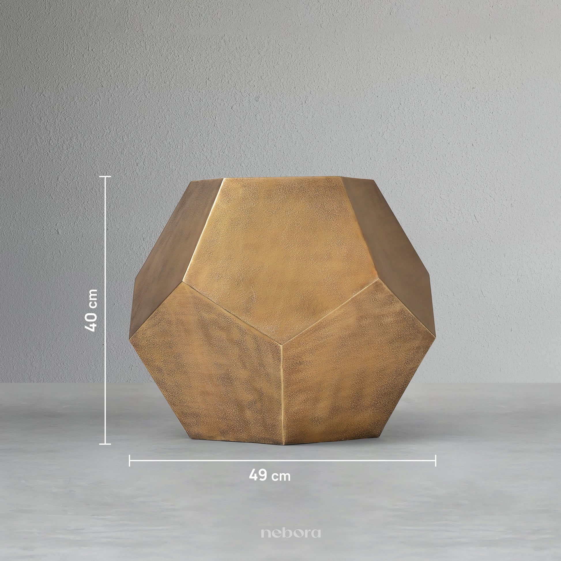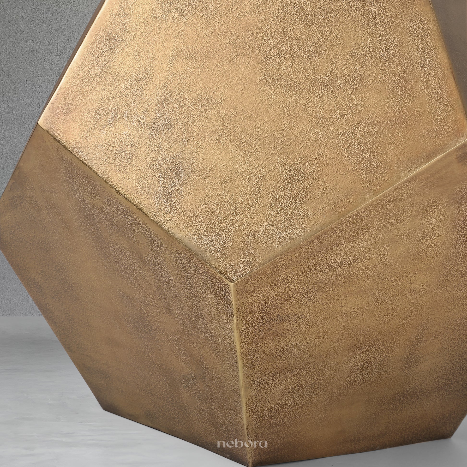 Elevate your living space with a statement of pure elegance. The Gilded Hexa Side Table, with its warm, luminous glow and compelling geometric structure, is the perfect companion for a luxurious armchair or a sleek sofa, inviting a feeling of curated beauty and timeless allure into your home.