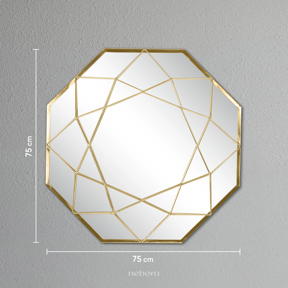 A true work of art, this octagonal mirror is a study in geometric brilliance, with a gilded frame that forms a captivating network of lines across its surface, creating a prismatic effect. The intricate design and radiant gold finish give it a sophisticated, jewelry-like quality that is both modern and timeless. This mirror is a perfect statement piece for an entryway or a living room, where its unique form will captivate the eye and fill the space with a luminous, glamorous energy.