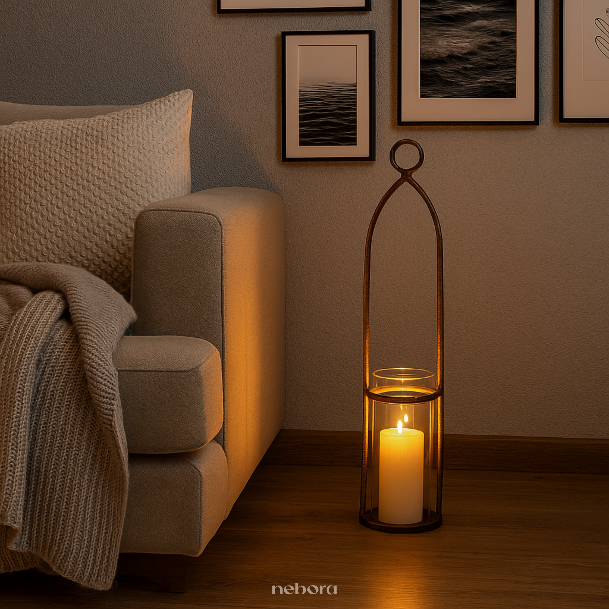 This lantern is a tribute to the past, crafted for the present. The combination of its weathered look and clear glass insert creates a captivating feeling of history and modernity. It’s a perfect addition to a cozy reading nook, a sunlit windowsill or a serene bedroom, bringing warmth and a story to your home.
