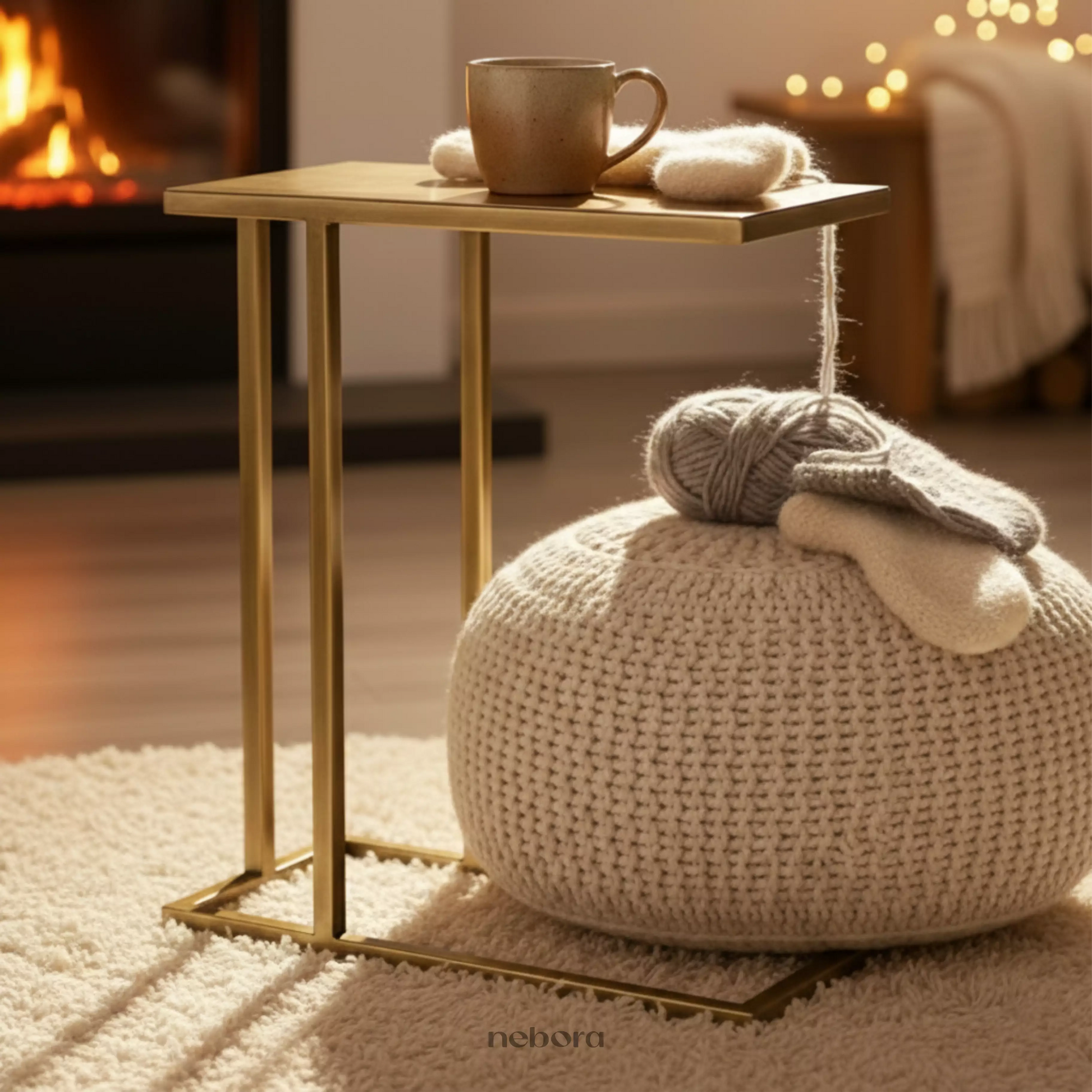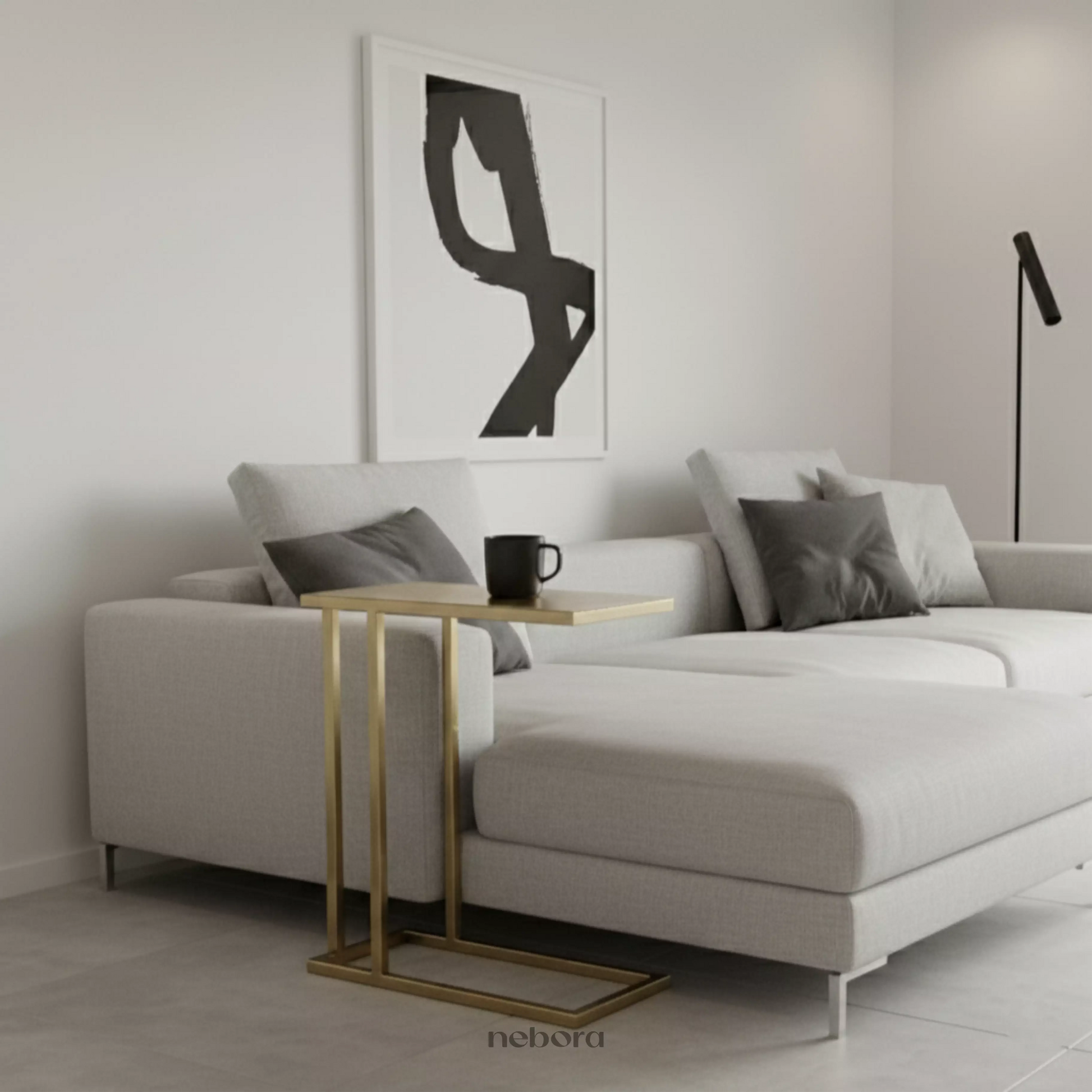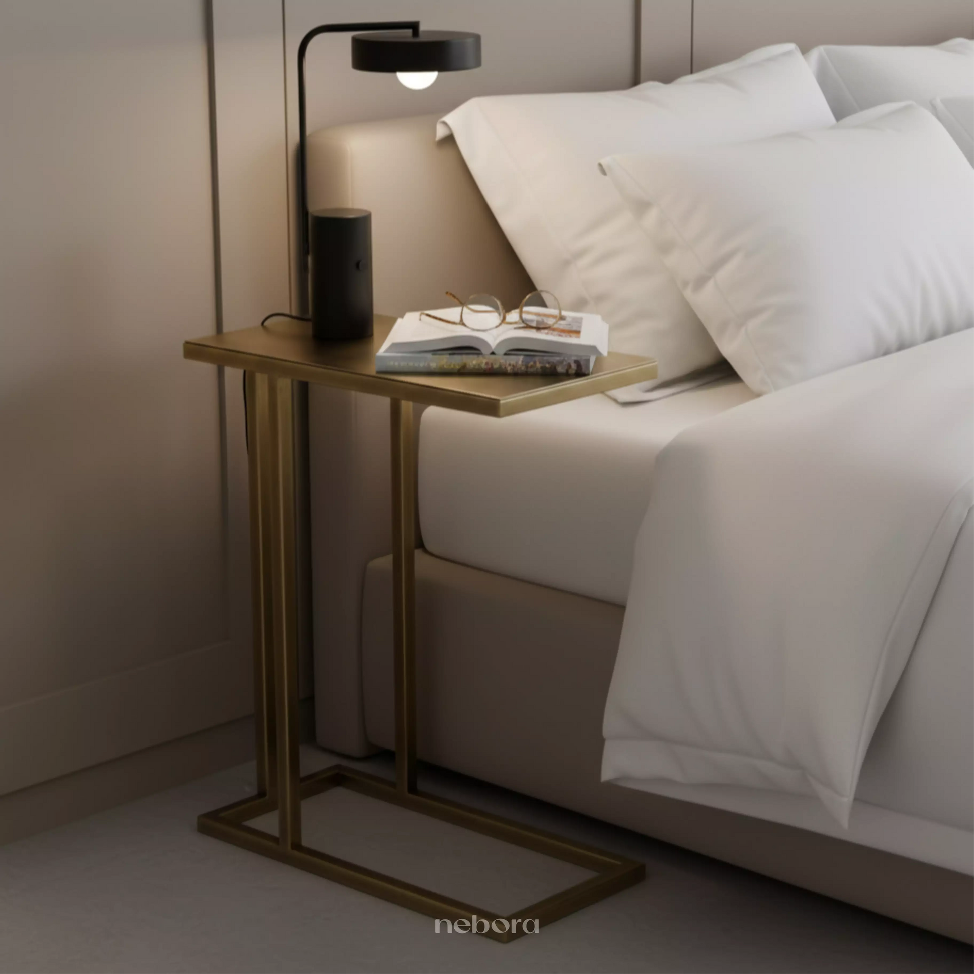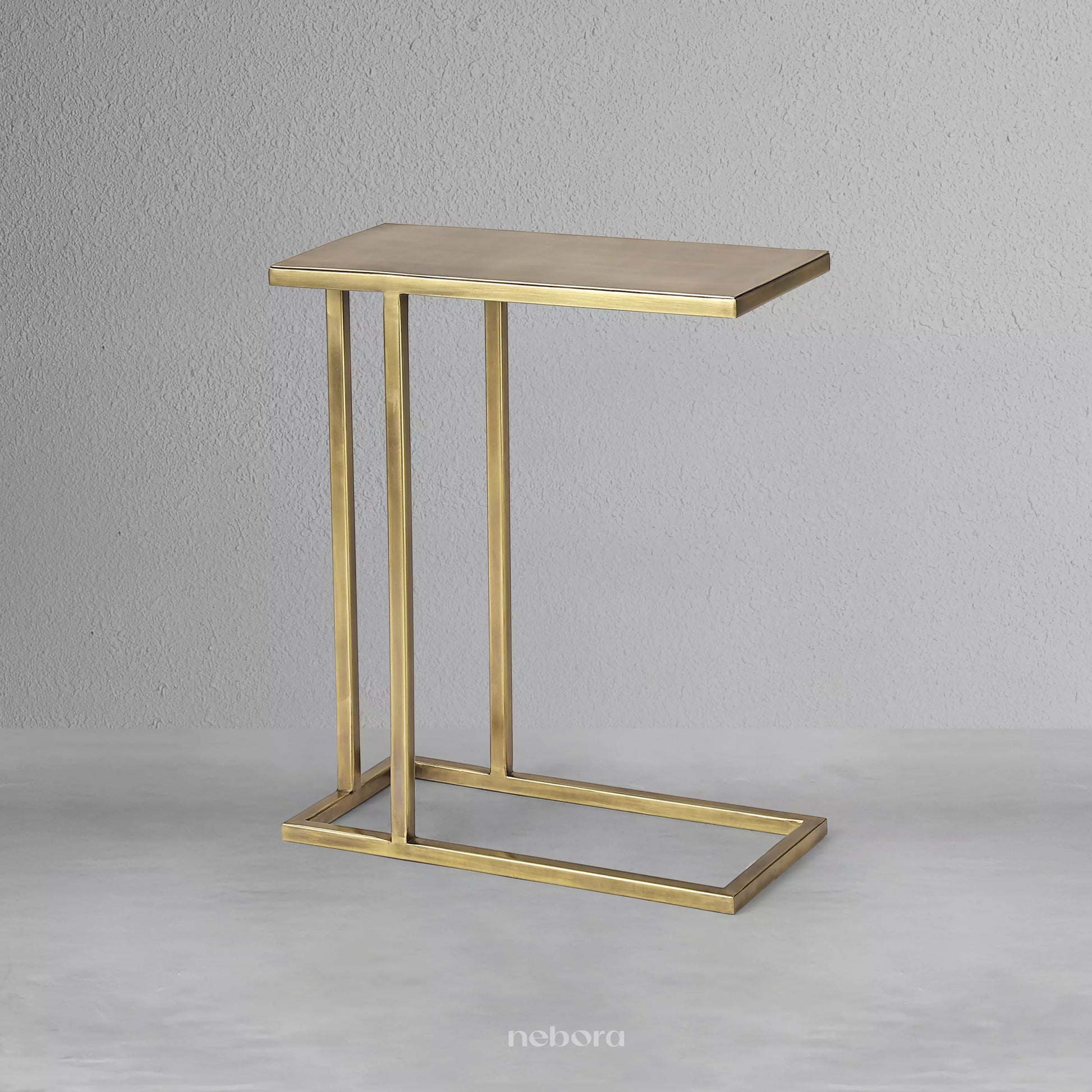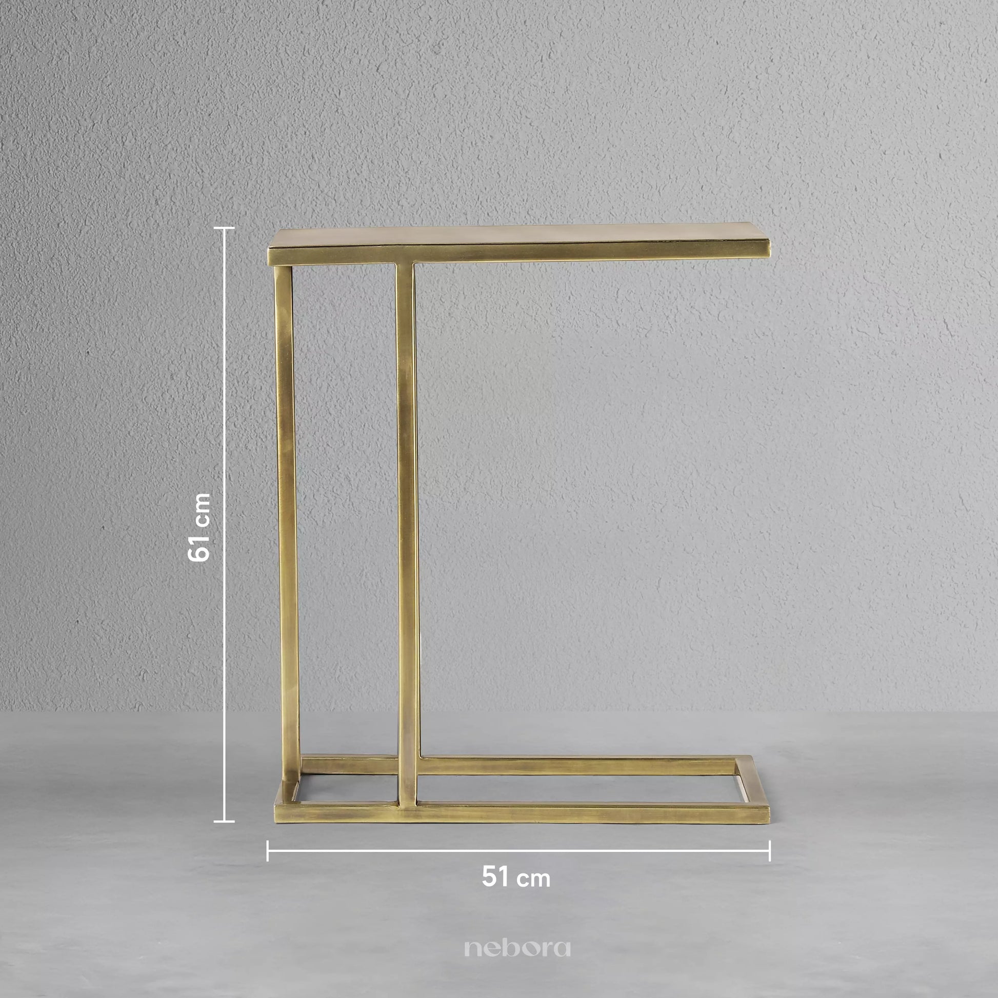 Discover a feeling of effortless elegance with the Sterling C-Metal Table. Its sleek, "C" shaped design glides over the arm of your sofa or chair, bringing a curated surface for your laptop or morning coffee right to you. This piece combines modern form with a warm, antiqued finish, promoting a feeling of relaxed sophistication and thoughtful convenience in your living space.