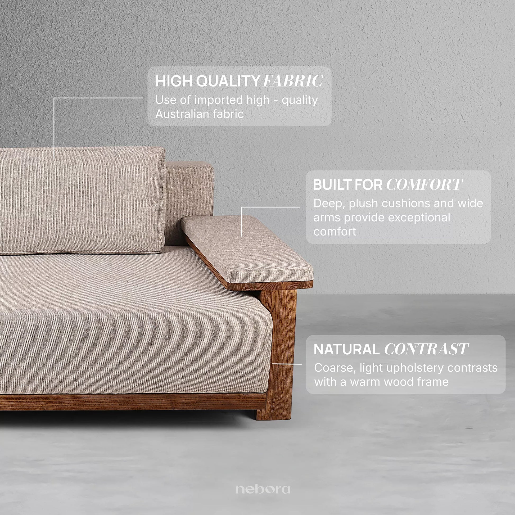 This is where your day ends and your comfort begins. The honest elegance of the wooden base provides a sense of grounding and stability, while the plush, well-proportioned cushions offer an escape from the world. Place this loveseat against a prominent wall in your living room or study to create a focal point that is both stylish and utterly relaxing.