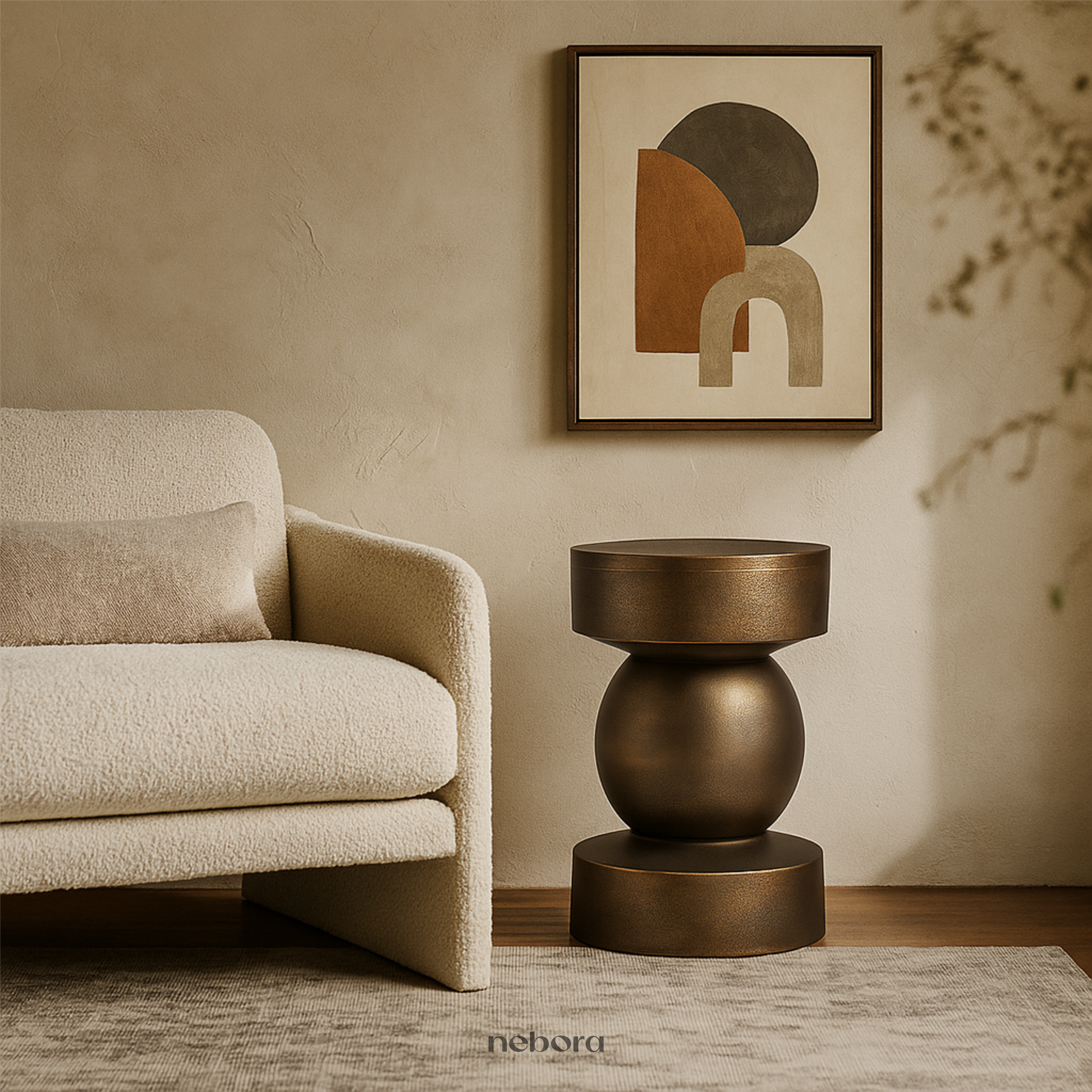 Place this artful spindle beside a favourite armchair to create a personal sanctuary. The Monolith Side Table, with its warm, aged patina and perfectly balanced silhouette, transforms a simple corner into a curated haven. It speaks to a taste for sophisticated form and a desire for a space that feels deeply personal and thoughtfully arranged.