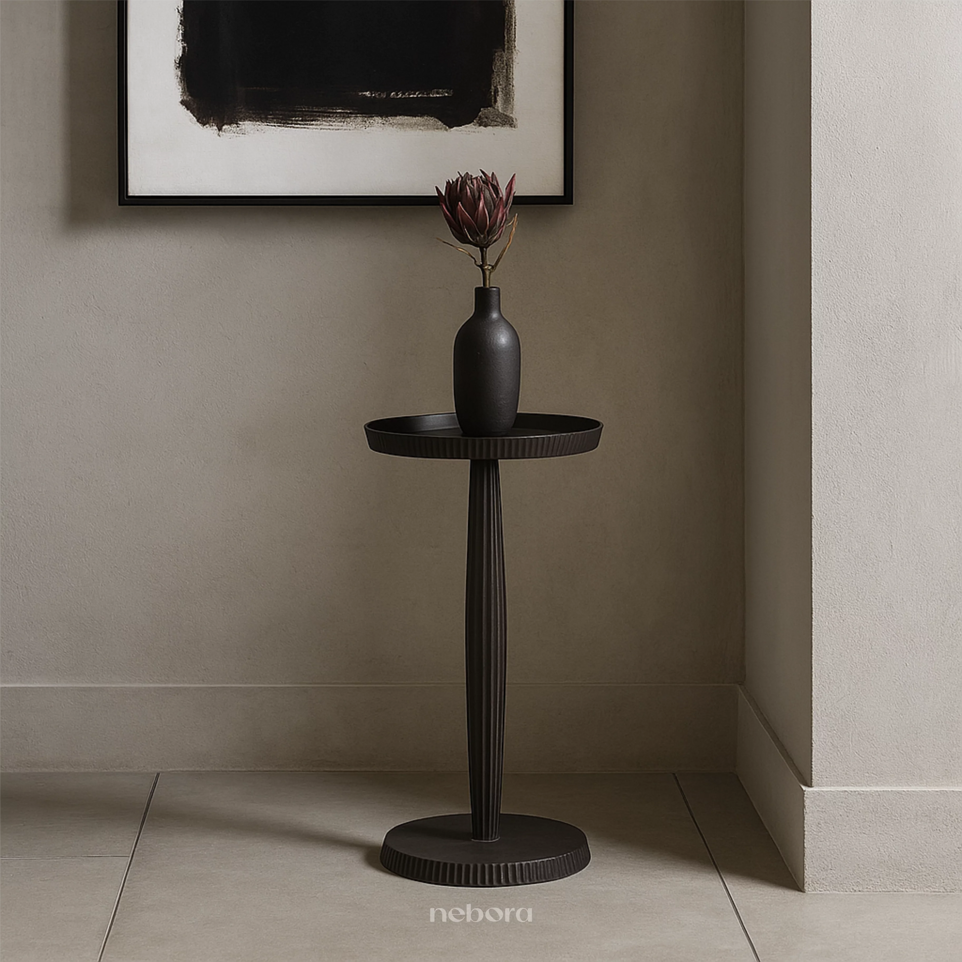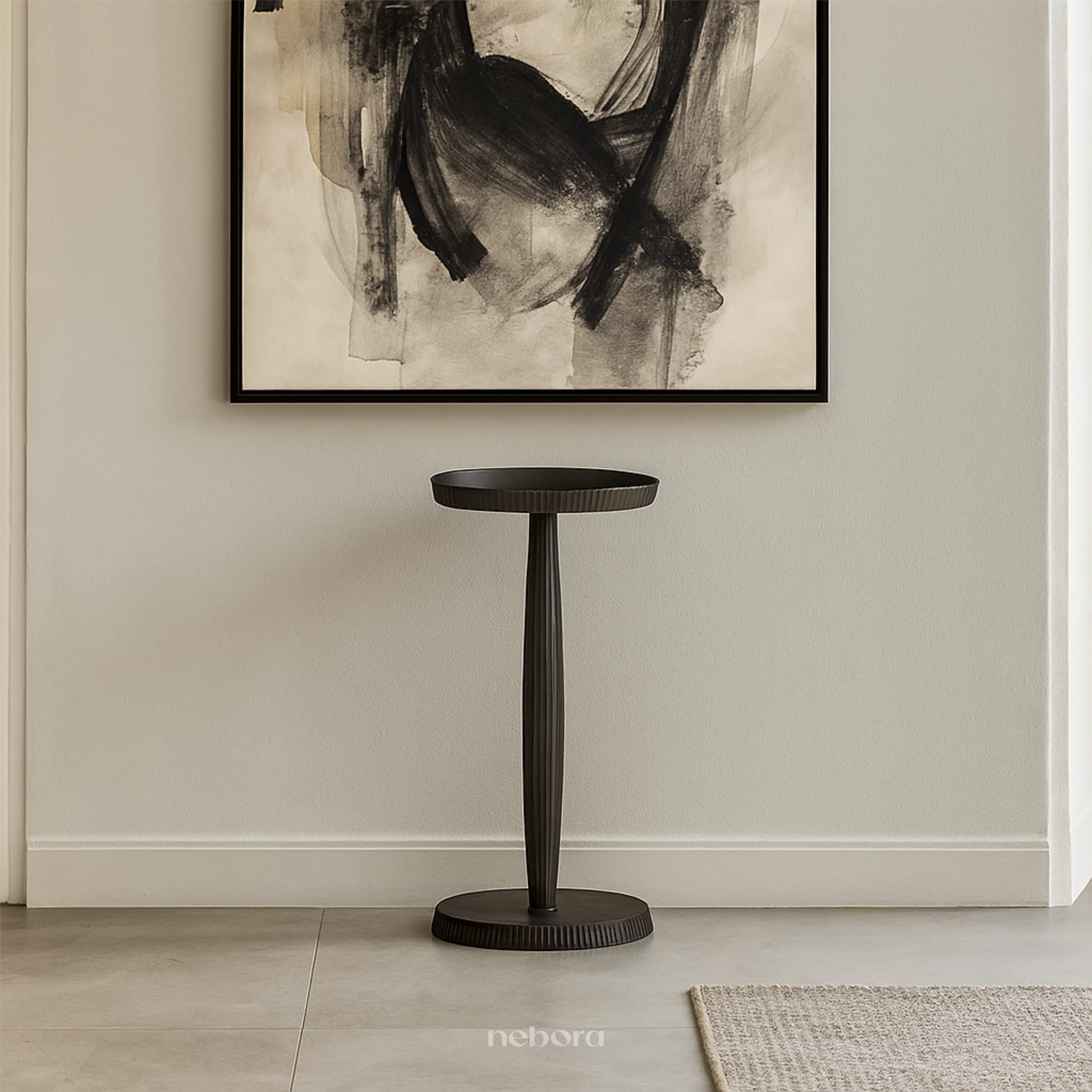 A silent companion for your moments of quiet reflection. Place this elegant drink table beside your favourite armchair, where its graceful, fluted form is always ready to hold your glass, freeing you to simply be.