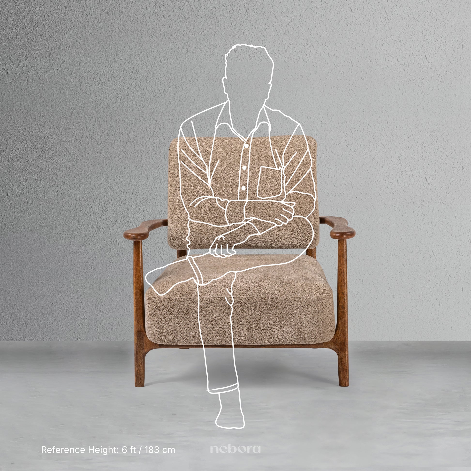 The structure is formed in solid wood, providing clarity and strength to the frame. Upholstery is applied with restraint, supporting the form rather than softening its intent.