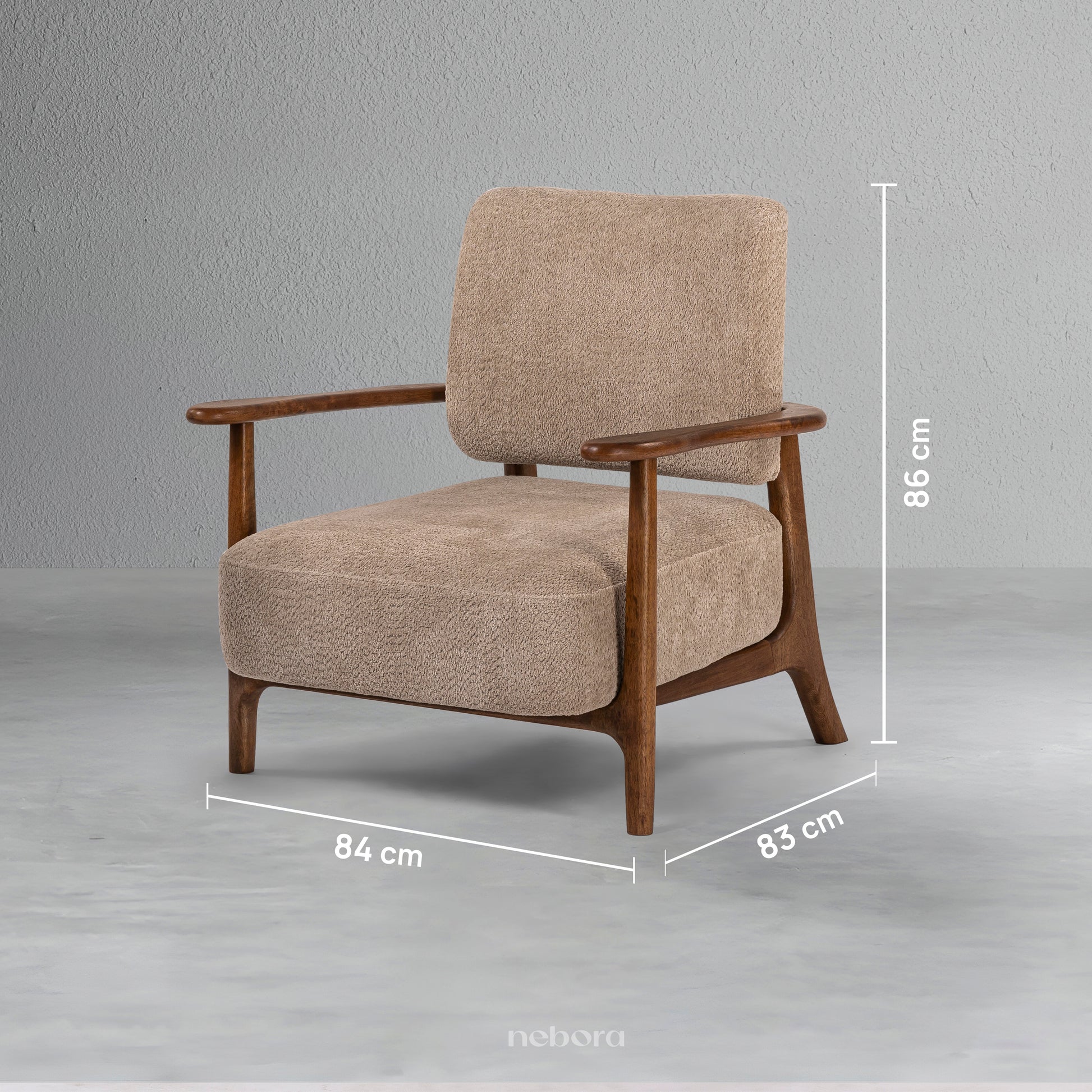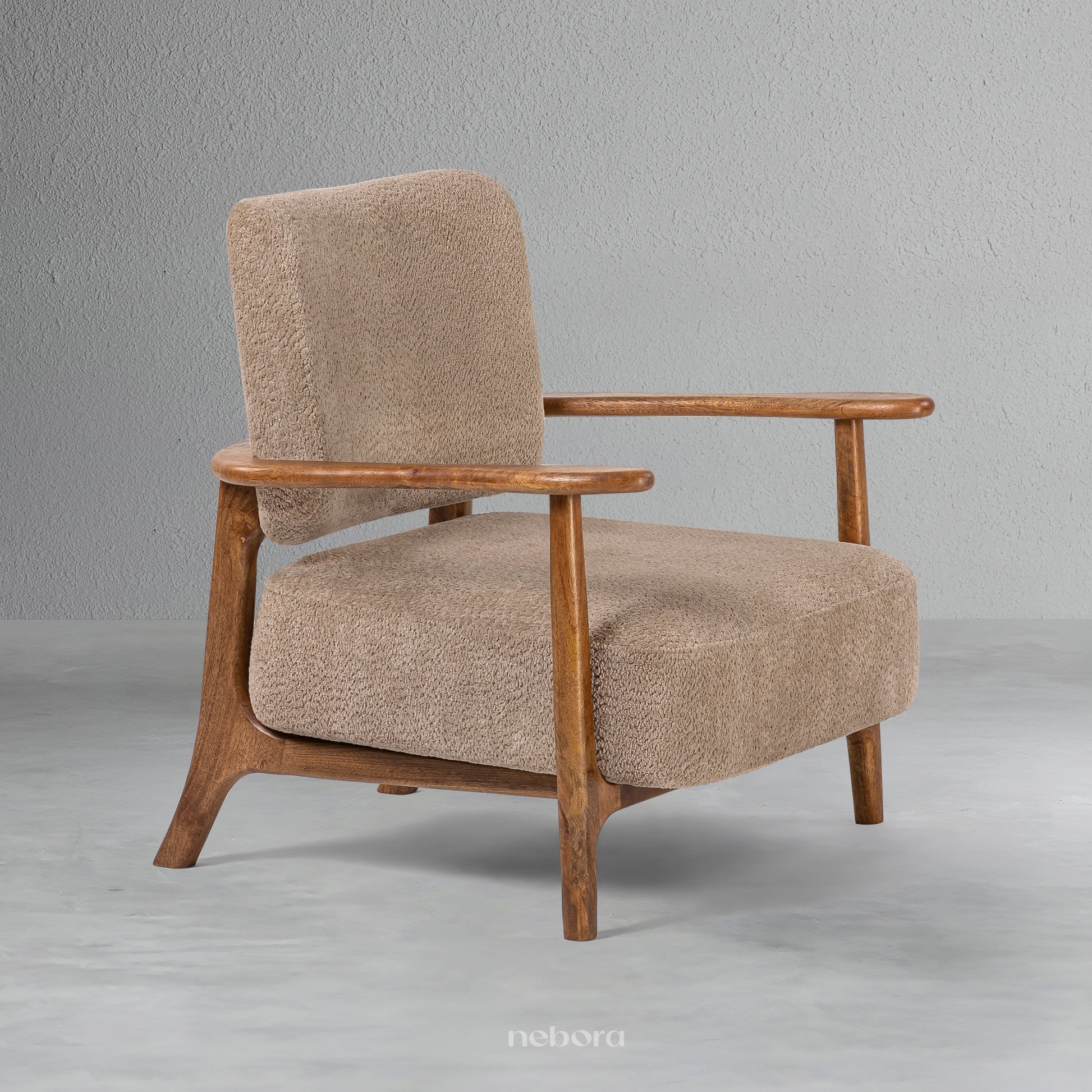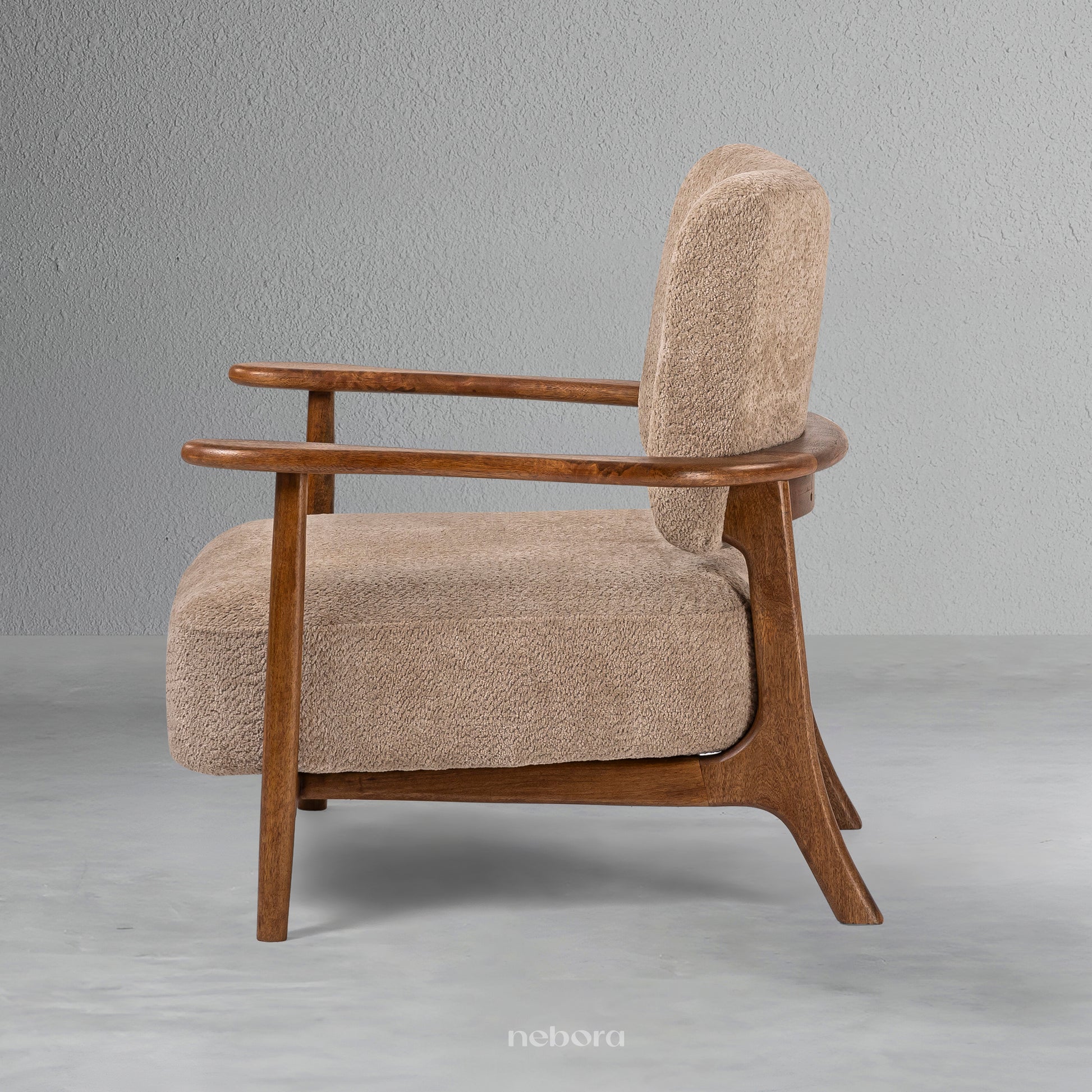 Experience the embrace of timeless comfort with the Milan Single Seater Sofa. Its solid wooden frame, featuring elegantly curved armrests and tapered legs, pays homage to classic mid-century design. Upholstered in a soft, textured fabric in a warm neutral tone, this sofa invites you to sink in and let the day's worries fade away. It's more than just a seat, it's a feeling of serene style and cozy relaxation, designed to be your favourite place to unwind.