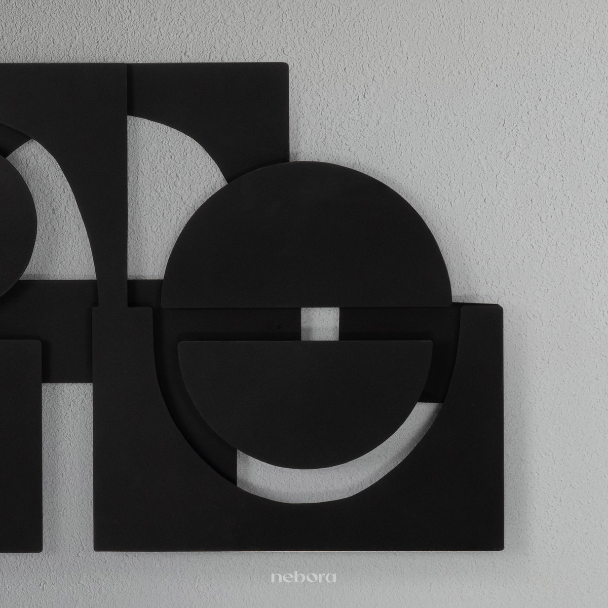 A stunning fusion of shape and shadow, this two-panel wall art creates a dynamic and captivating visual with its intersecting geometric forms in a matte black finish. The abstract composition invites contemplation, offering a powerful statement of modern sophistication and artistic intrigue. This piece is the perfect focal point for a minimalist living room, a contemporary office, or an elegant hallway, where it will add depth and a sense of thoughtful design.