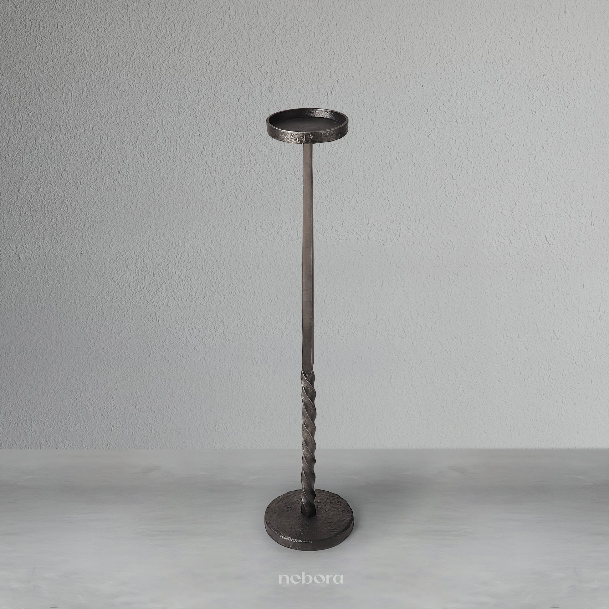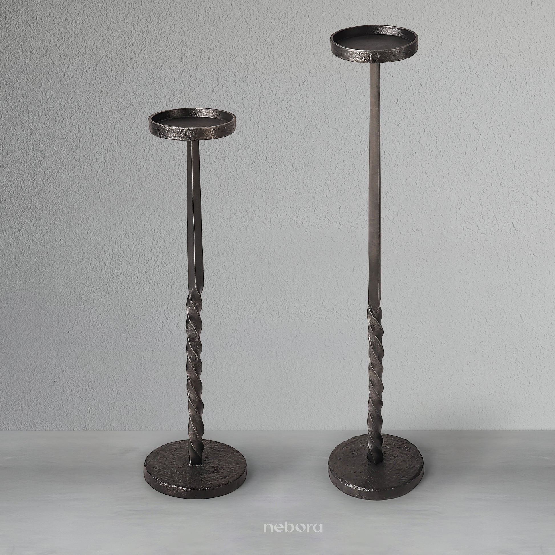 This pair of holders, with their robust forged finish and elegantly twisted spires, feels both timeless and deeply grounded. Place them as striking statements on a fireplace hearth or a console table, where their dark forms add a powerful, sculptural presence to your space.
