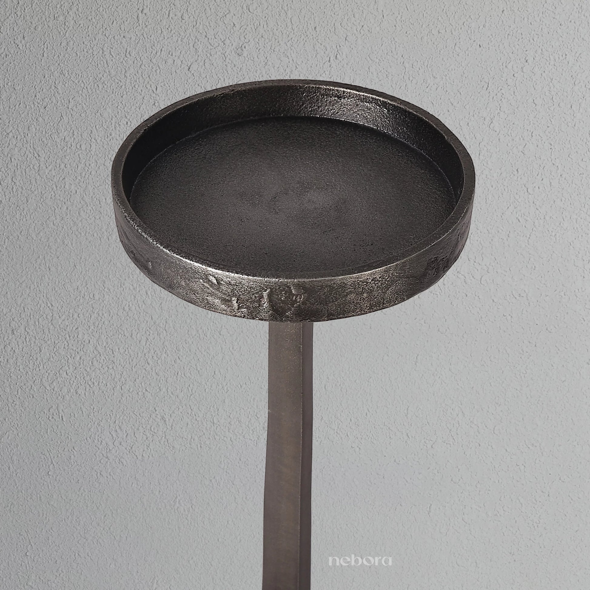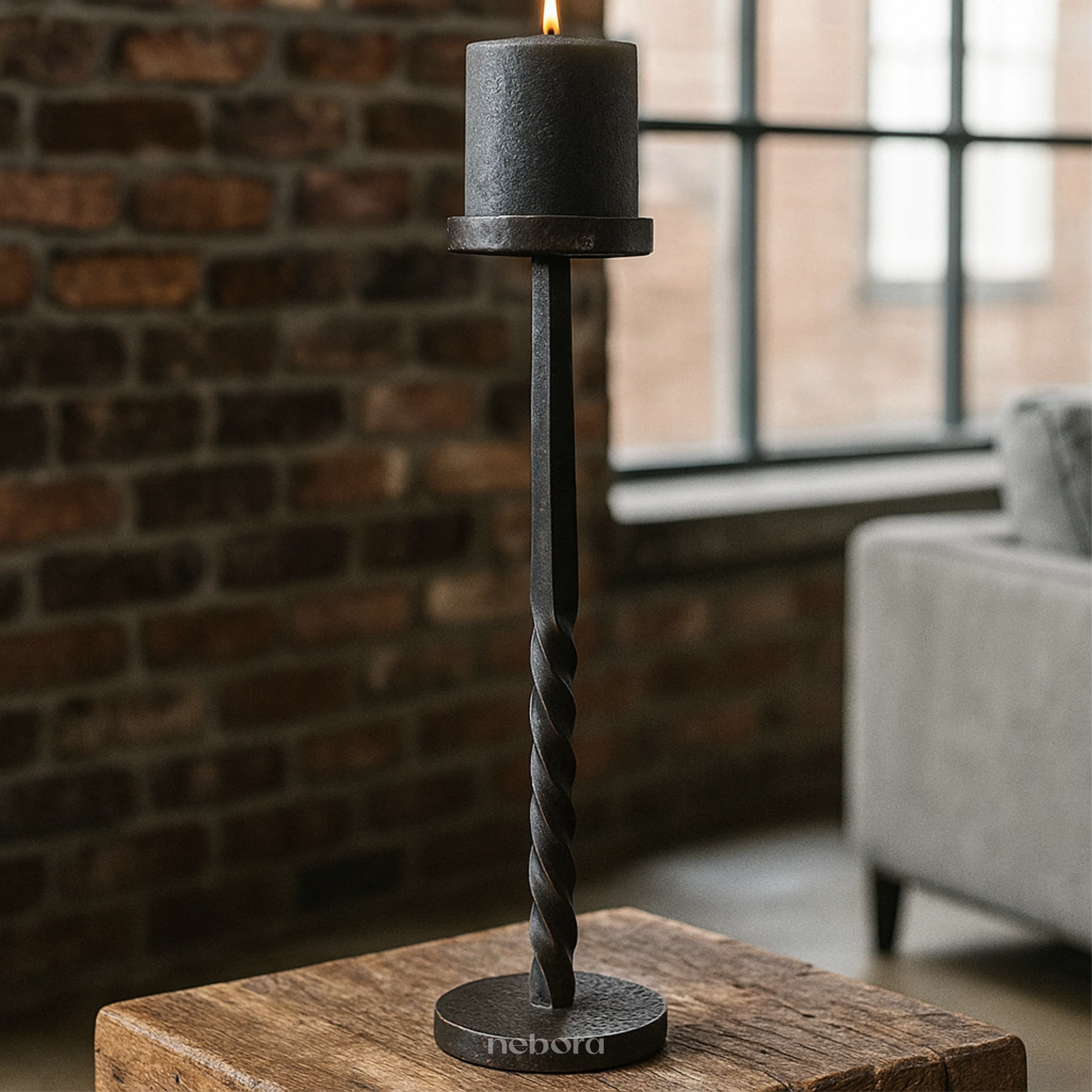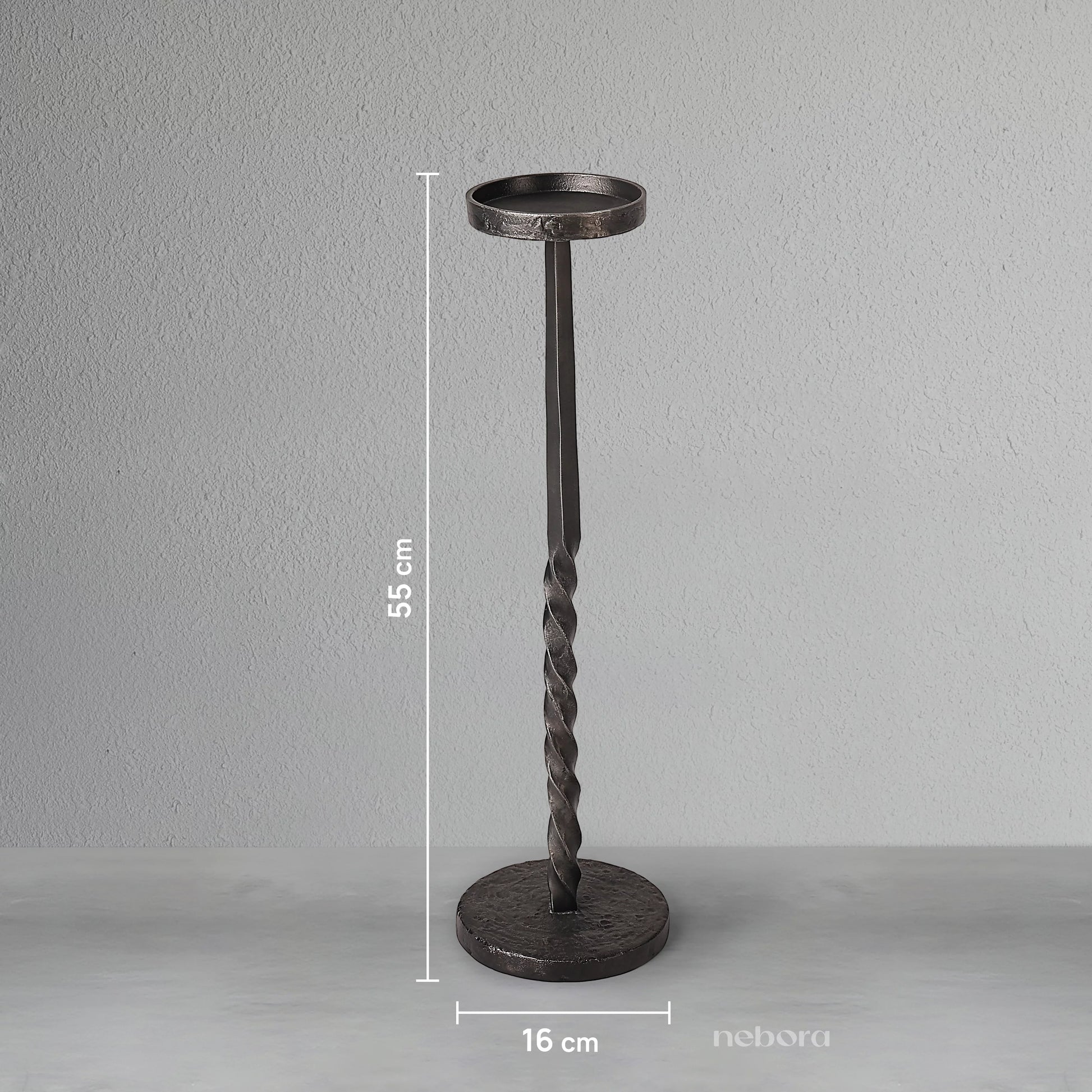 A piece of functional art, this holder's dark, twisted form suggests a story of earth and fire. Perfect for creating a sense of moody ambiance in a study or a modern living room, its unique silhouette and the single flame it holds will cast a captivating, mystical glow.