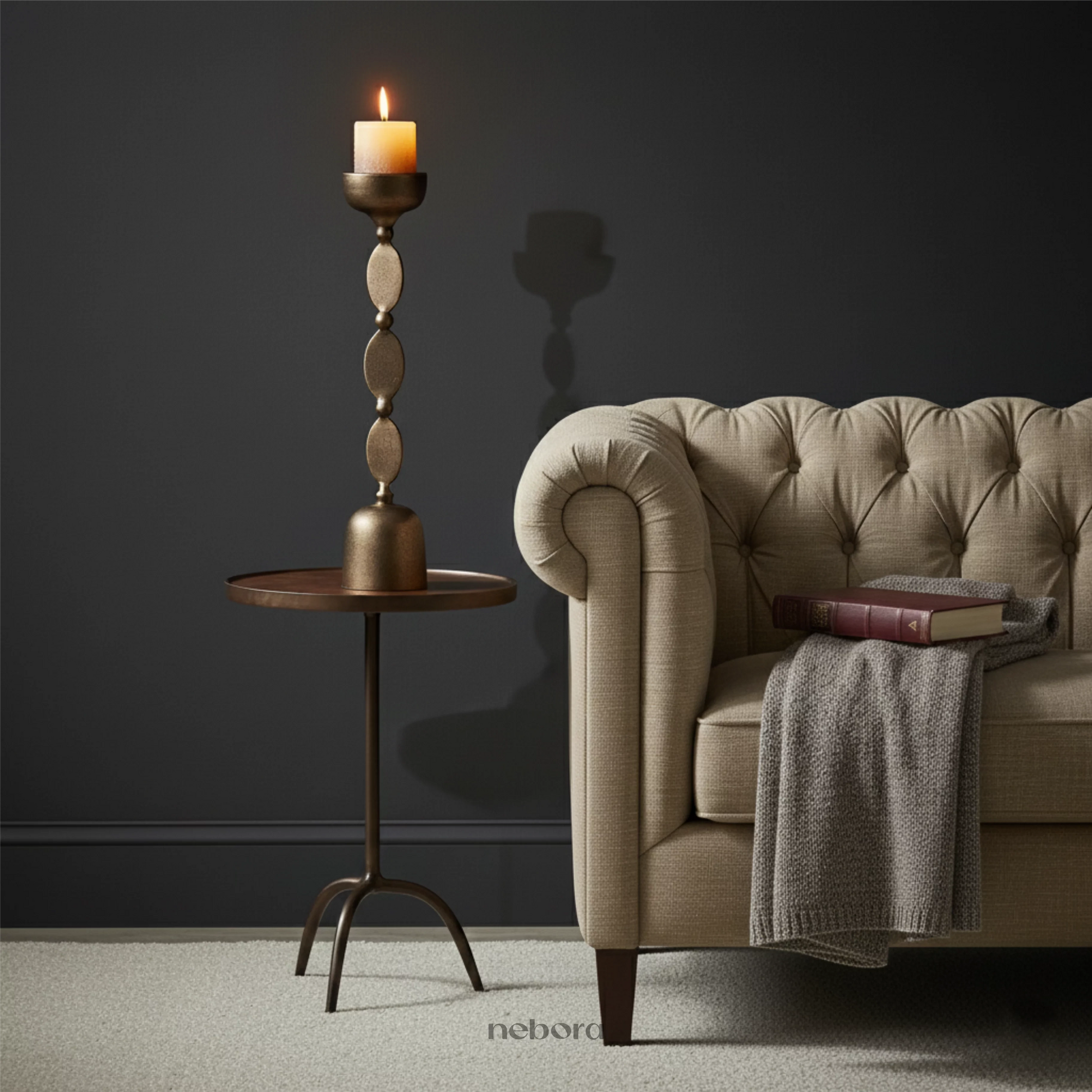 When in use, the candlelight interacts beautifully with the metal, creating a soft glow that enhances the stand’s silhouette. Even unlit, it remains a quiet sculptural presence on a console, dining table, or bedside.