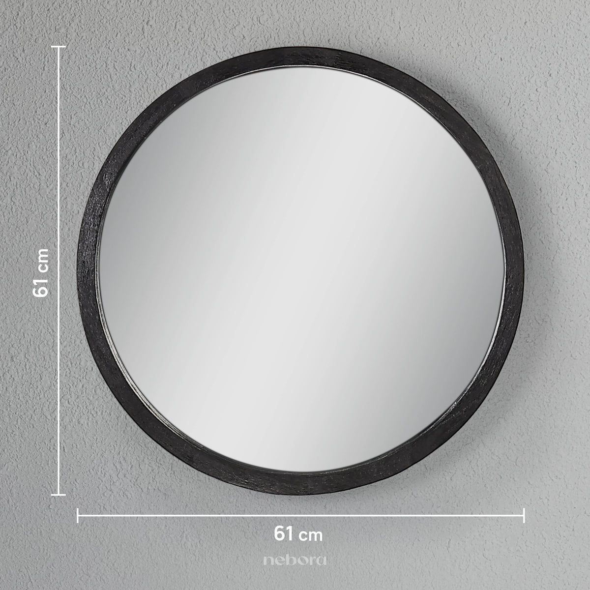 A masterpiece of rustic elegance, this mirror's round frame is a study in raw, textural beauty. Its dark, rich finish and hand-forged feel give it a soulful, grounded presence, while the classic circular shape offers a sense of serene perfection. This is an ideal piece to be placed over a substantial credenza or as a powerful, solitary statement in a minimalist space, where its unique character and quiet strength will create a captivating and unforgettable focal point.