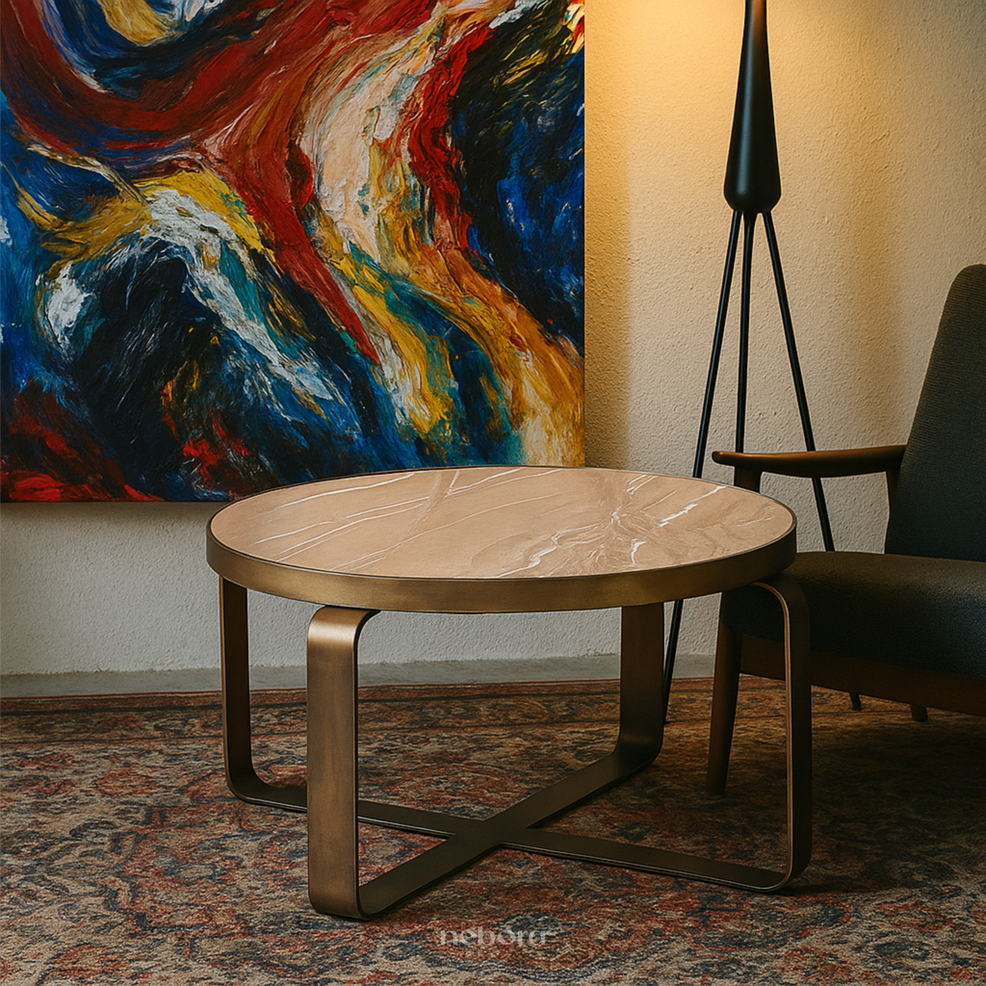 Feel the connection to the natural world with this stunning blend of marble and metal. The earthy tones and organic patterns of the stone are perfectly balanced by the clean, architectural lines of the base, creating a sense of grounded style. Place it in a sunlit reading nook or as an anchor in a living room, and enjoy a piece that feels both refined and deeply connected to nature.