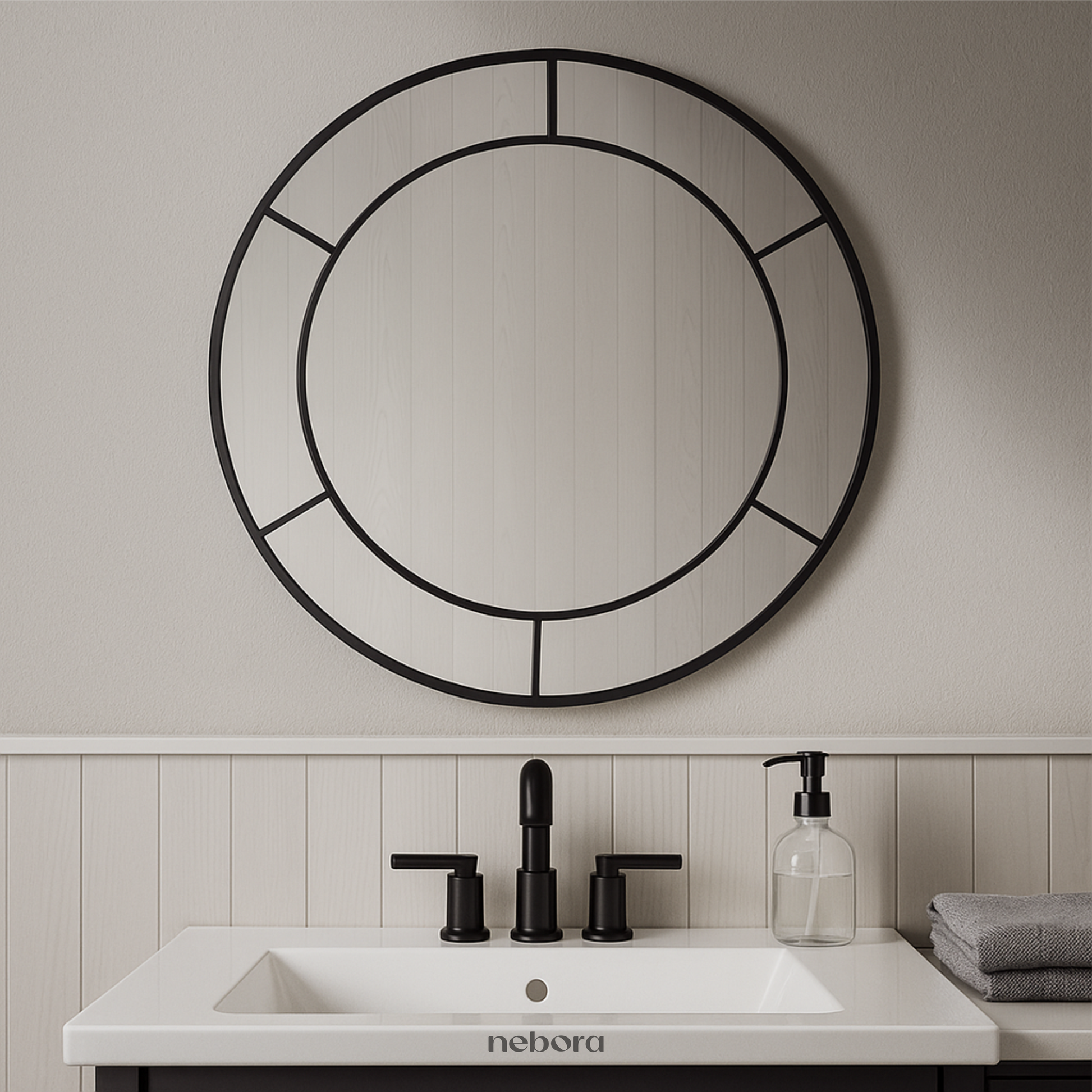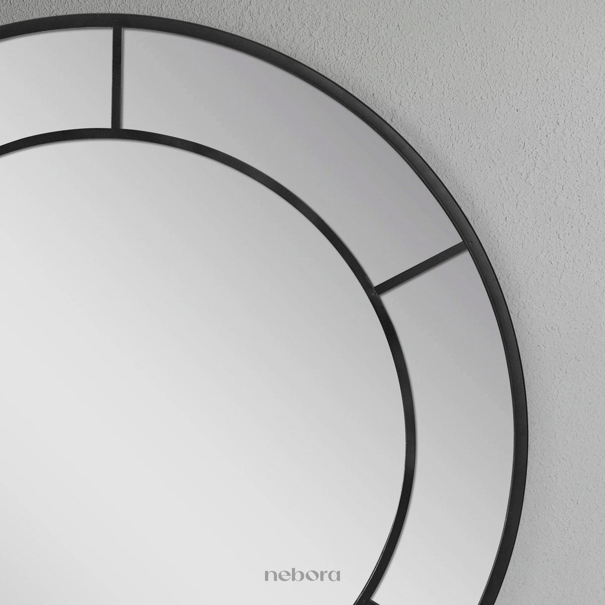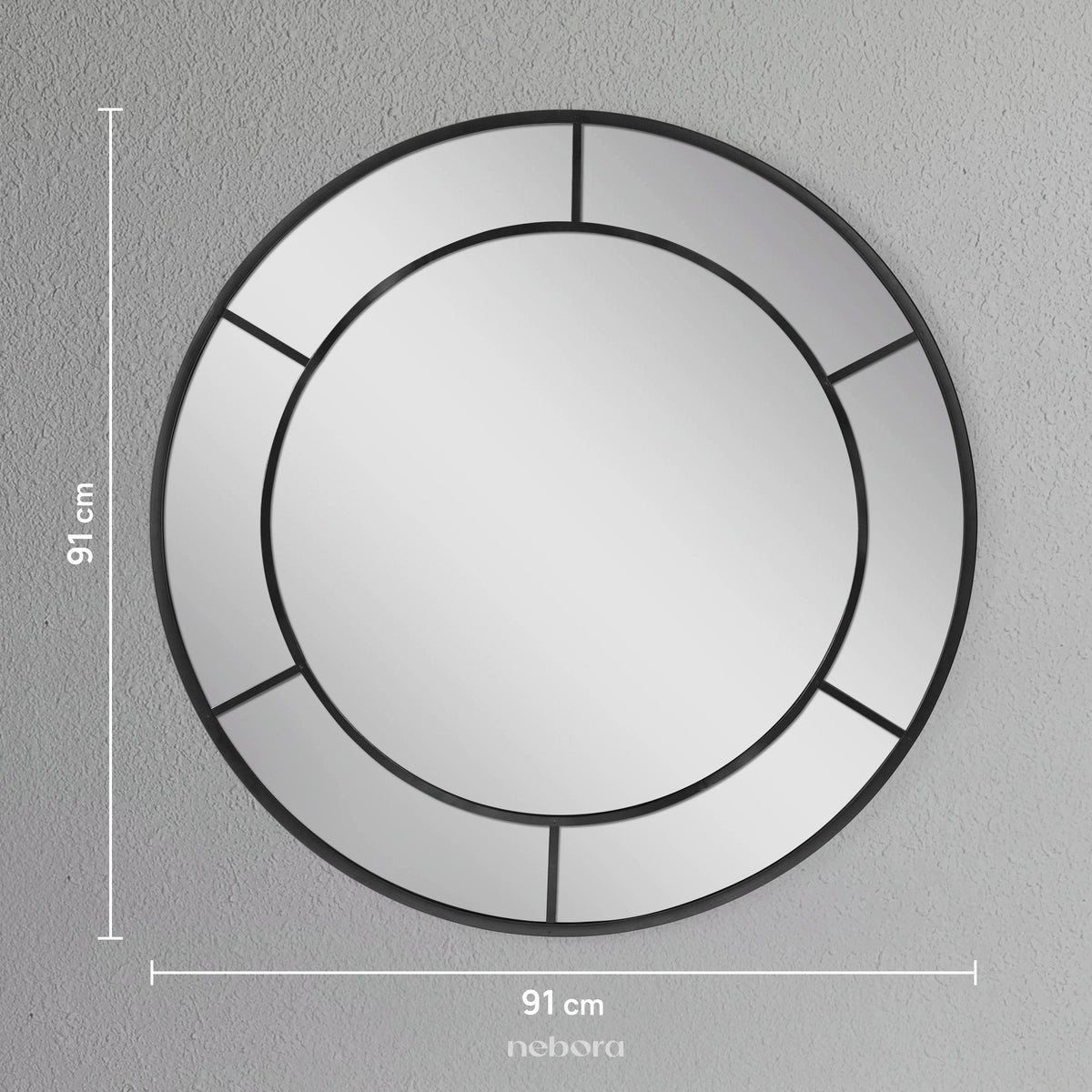 This beautiful Portal Round Mirror is more than a reflection; it's a piece of art that adds a captivating dimension to your home. Its striking black frame, segmented into an elegant radial design, creates a feeling of sophisticated modernity and depth. This mirror is perfectly suited for an entryway to make a grand first impression or placed above a living room console to become an instant conversation starter.