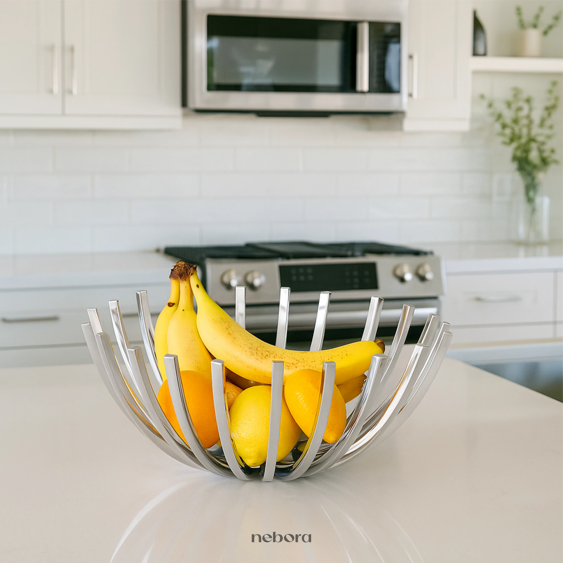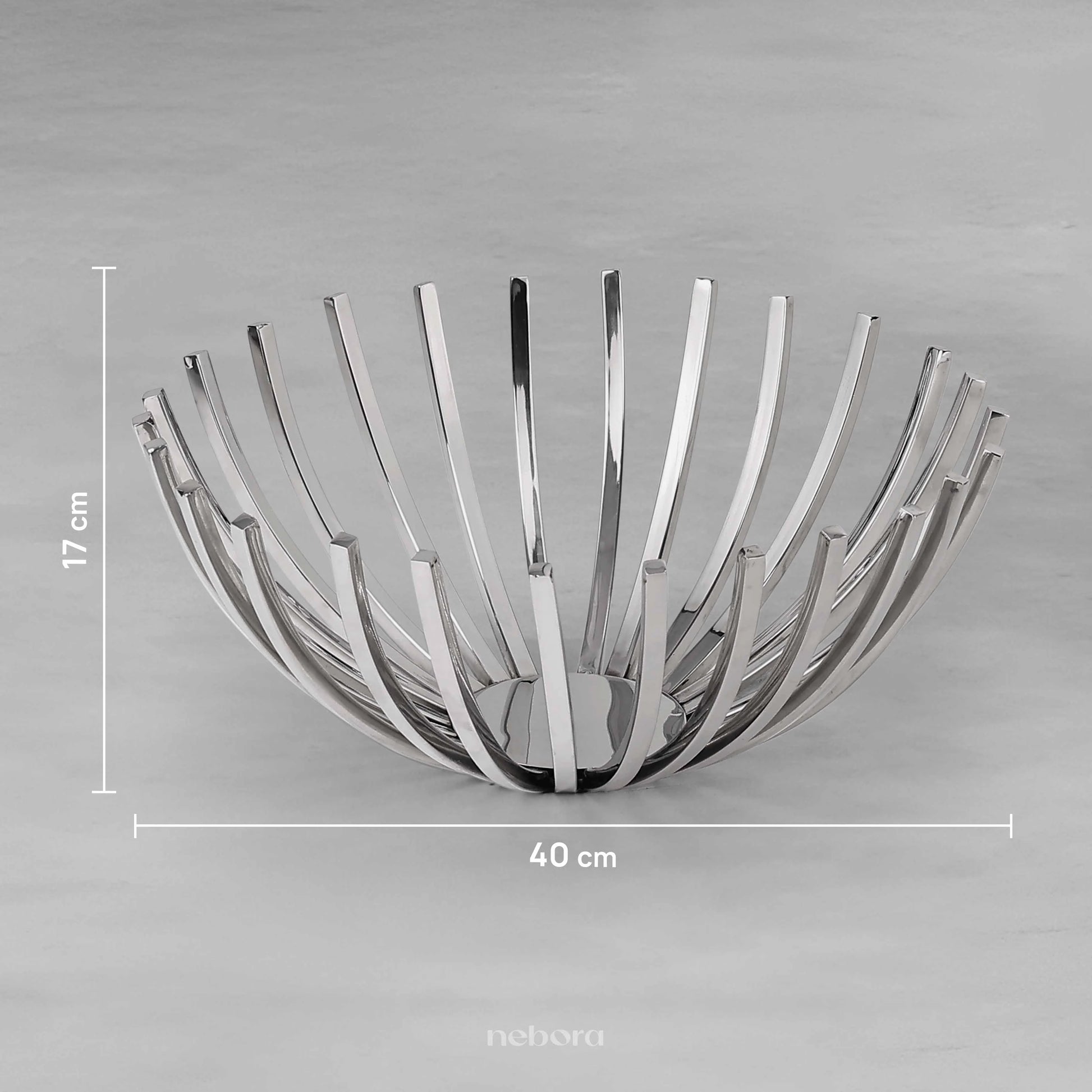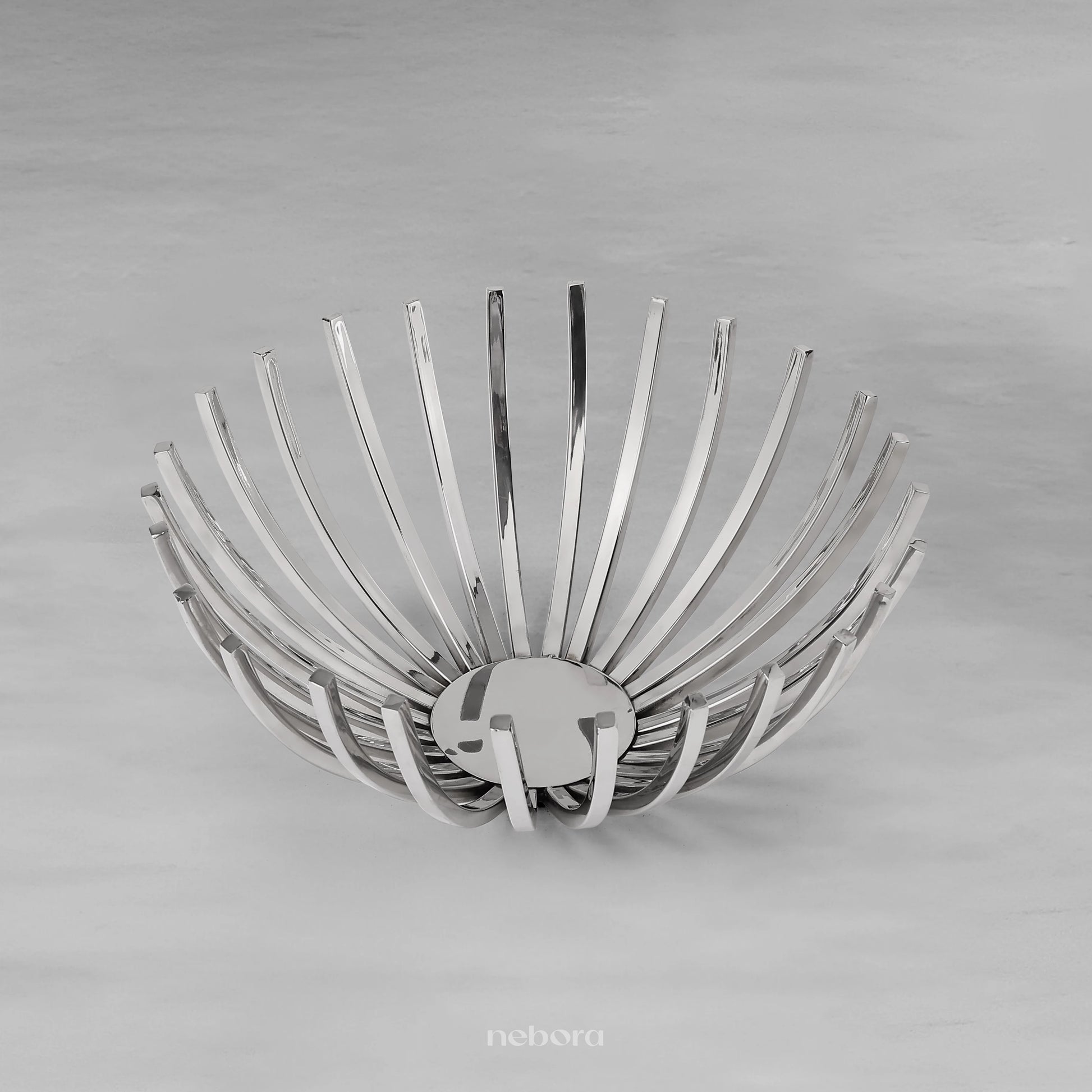 With its highly polished surface and a design that mimics a sunburst, this decorative bowl is a stunning piece of modern art. The gleaming metal rays radiate from a central core, creating a graceful, open silhouette that is both delicate and commanding. This bowl is a perfect focal point for a dining room table or kitchen island, where it will hold fresh fruit or stand alone as a radiant and sophisticated sculpture.