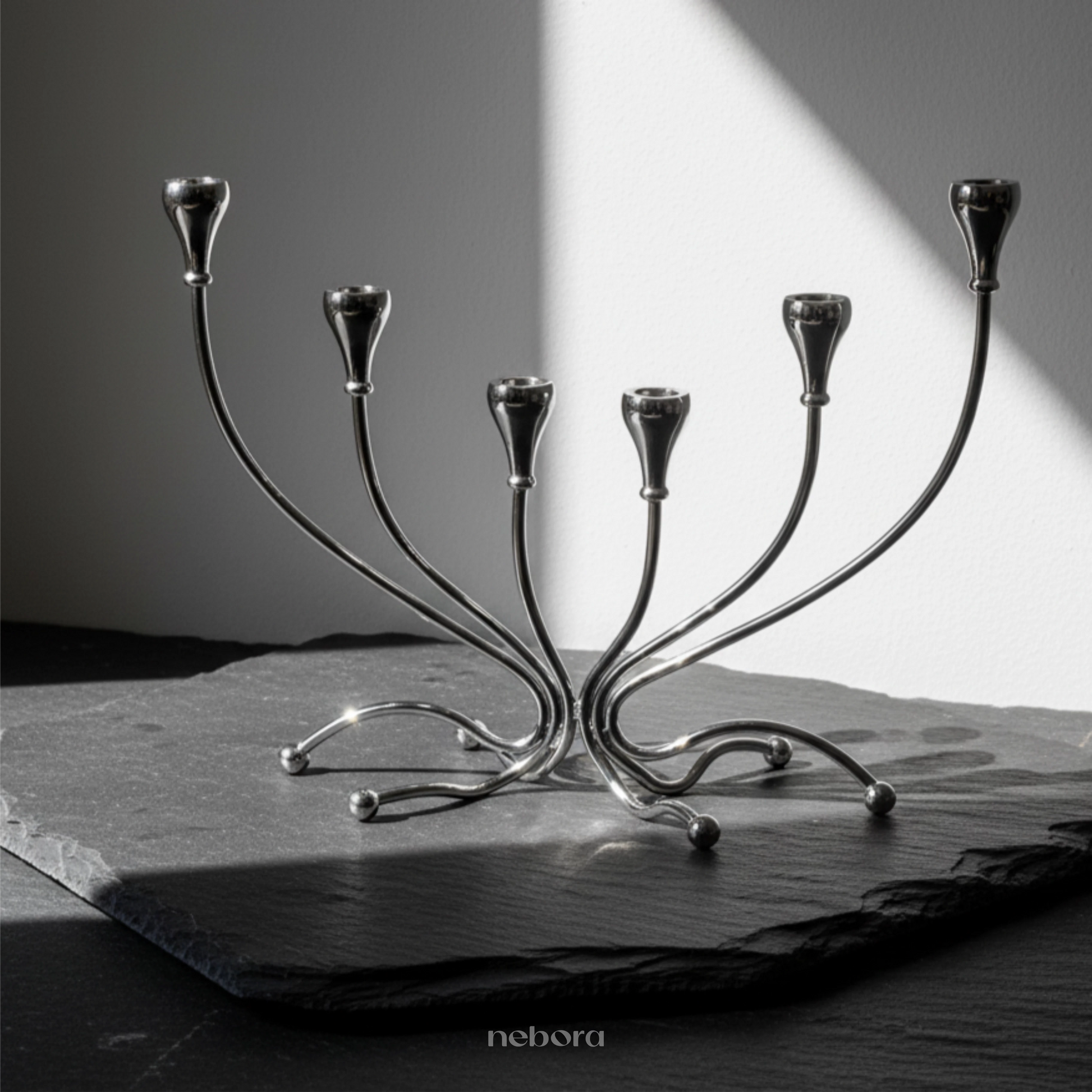Inspired by the graceful dance of moonlight through branches, this candelabra is a modern work of art. Its polished silver surface and elegant, flowing lines evoke a sense of quiet magic and natural beauty, turning any space into a serene sanctuary. Place it on a sideboard or a prominent table to create a focal point that is both ethereal and profoundly stylish.