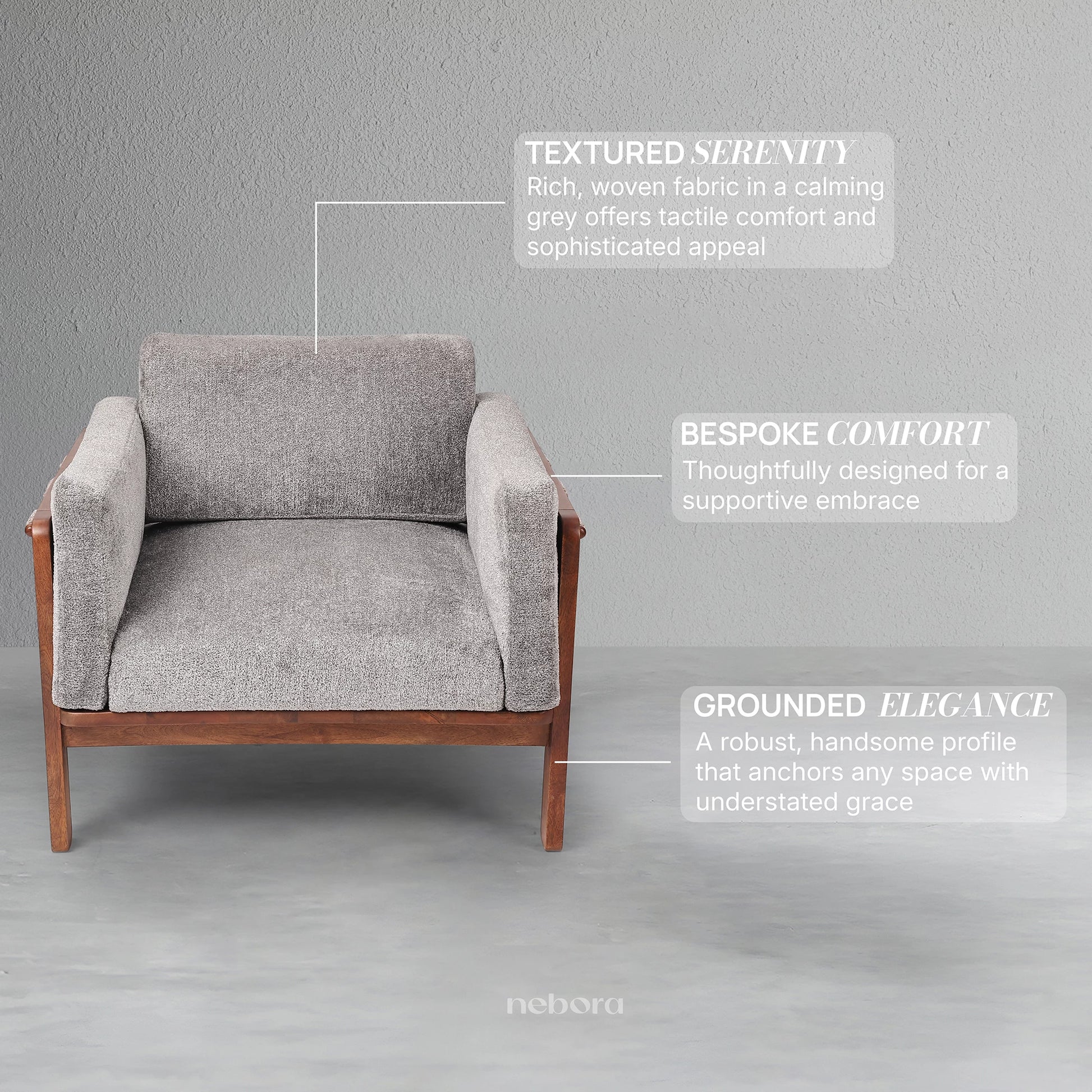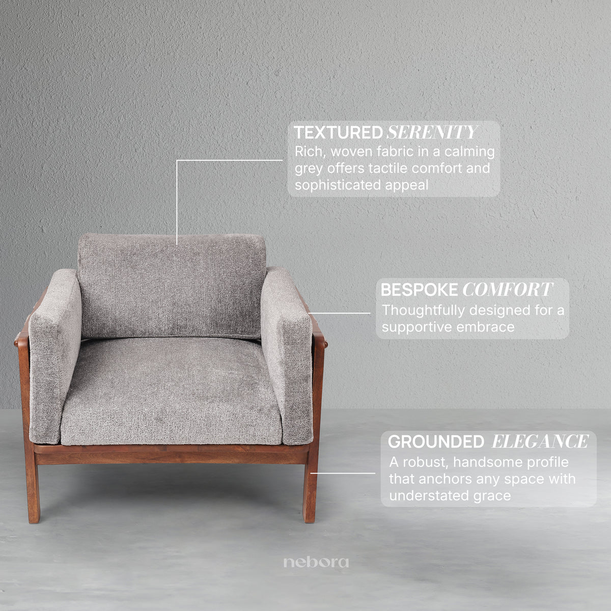 Discover the perfect blend of style and serenity with the Siena Single Seater Sofa. Meticulously crafted with a rich, wooden frame and clean lines, its design speaks to a sense of enduring quality. The generously cushioned seat and back, covered in a soft, textured fabric, create an irresistible invitation to slow down and find a moment of peace. This sofa isn't just a beautiful piece of furniture; it's a feeling of home, designed to be the anchor of your personal sanctuary.