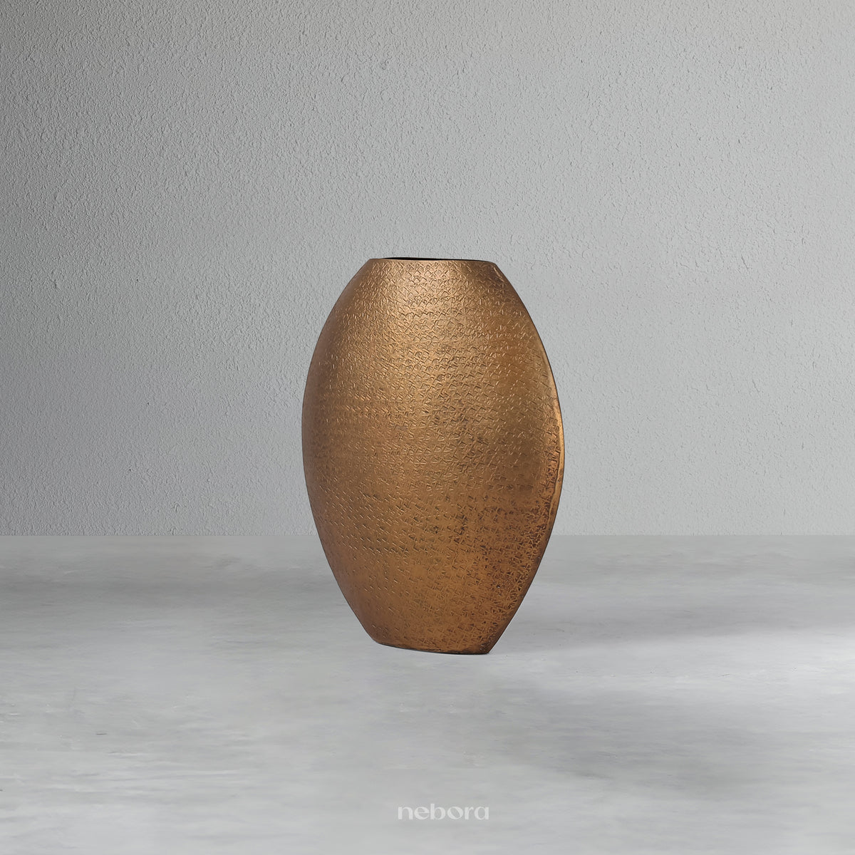 Bring a touch of tranquil artistry into your home with the Terra Orb Small Vase. Its monumental, yet perfectly smooth silhouette and hand-finished, warm metallic texture provide a captivating focal point of serene beauty. This piece of sculptural design is ideal for creating a moment of calm on your entryway console or a sense of balance on a living room shelf, effortlessly blending with your unique style.