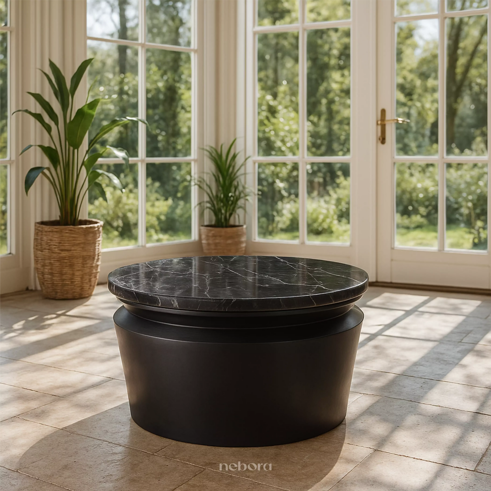 The Voltra coffee table invites a moment of stillness. Its simple, cylindrical shape and smooth surface create a serene anchor, offering a perfect resting place for a quiet book or a warm cup of coffee, bringing a sense of calm and collected harmony to your space.