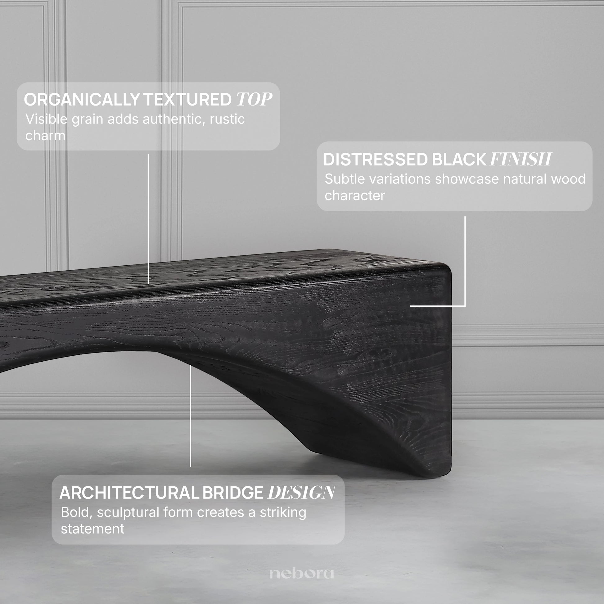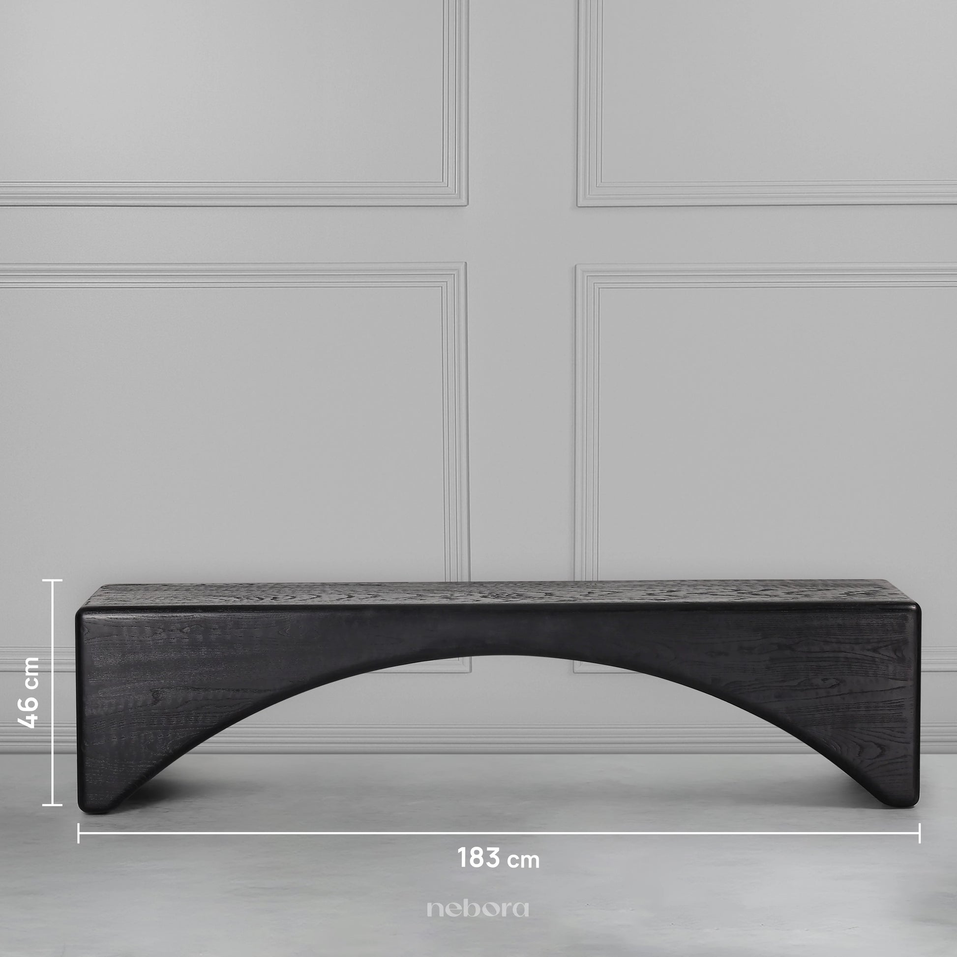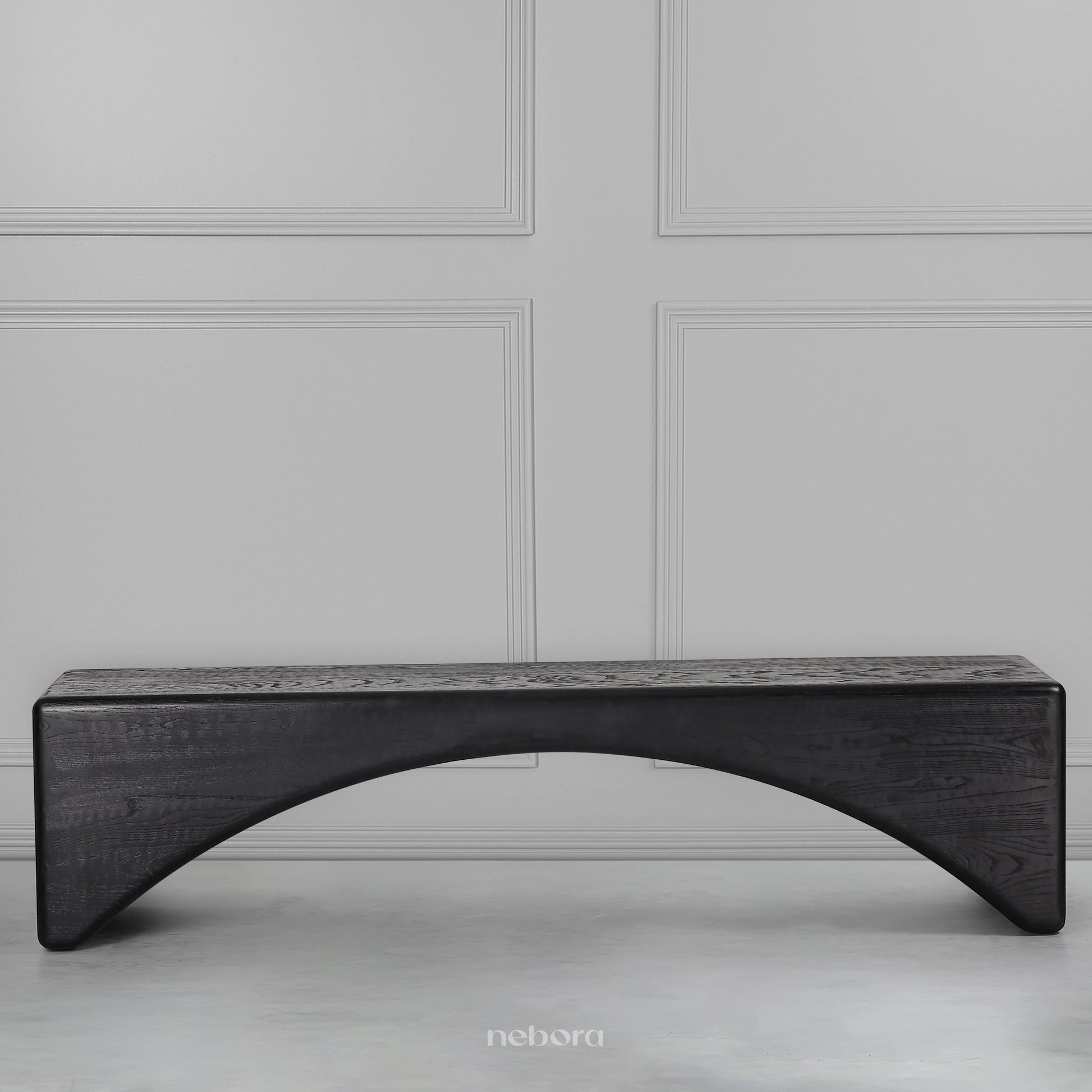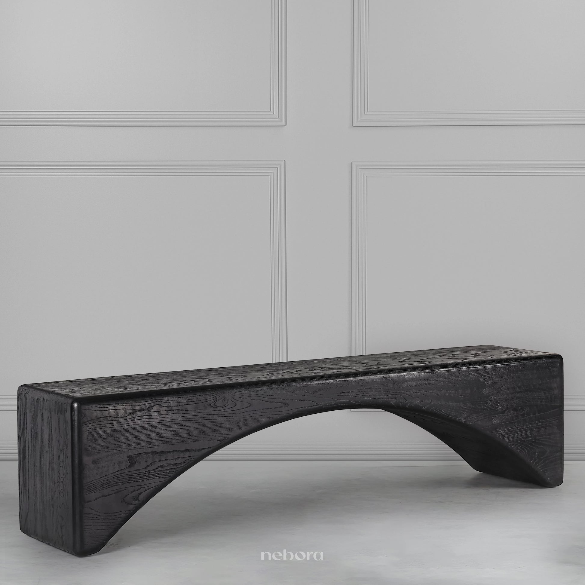 The Zenith Horizon Bench is a masterpiece of minimalist sculpture, with its bold, ebonized wood form creating a dramatic, uninterrupted arc that spans a serene horizon. Its monolithic silhouette and smooth, rounded edges give it a powerful yet tranquil presence, making it a functional piece of art. This bench is perfect for an entryway or at the foot of a bed, where its commanding and elegant design will elevate the entire space with a sense of sophisticated simplicity.